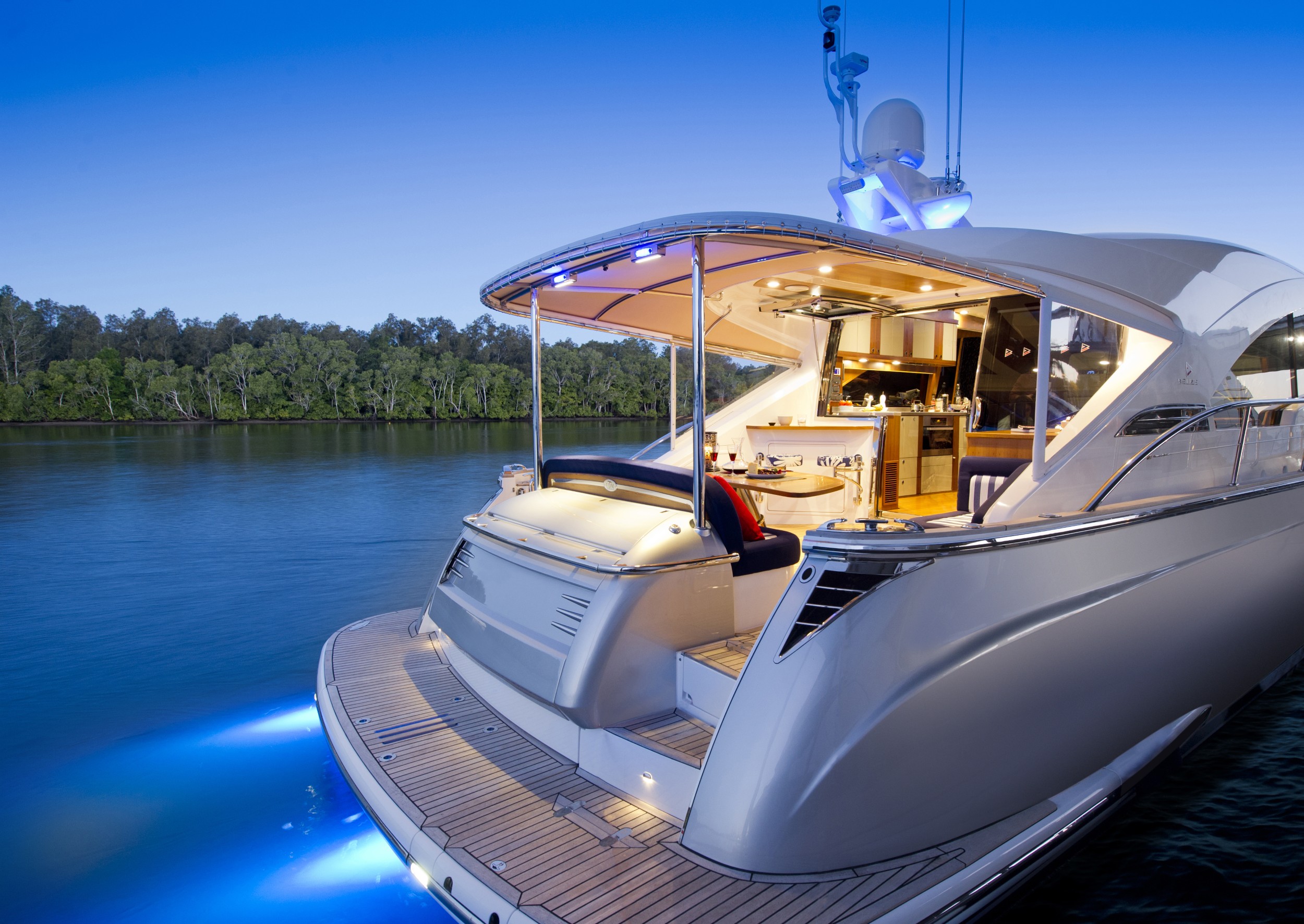 Belize Yachts are a luxury motor yacht designed and engineered by Riviera Yachts in Australia, but built at a shipyard in Kaohsiung, Taiwan. There are currently two models offered – a 54 and a 66 – both with daybridge and sedan variations. Easily recognizable thanks to the large deckhouse and low profile, Belize Yachts are made for serious luxury cruising.