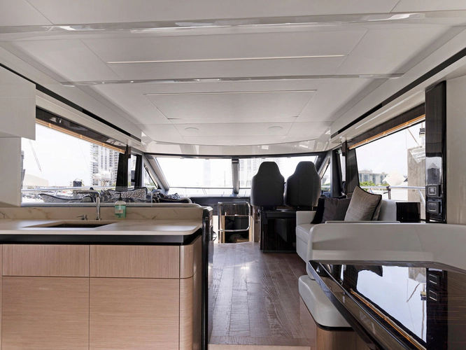 The 62 gives you a spacious and comfortable layout. Designed with elegant leathers and fabric the mirrored windows create a design that gives you remarkable interior brightness. Loaded with options the 62 is ready for your next adventure.