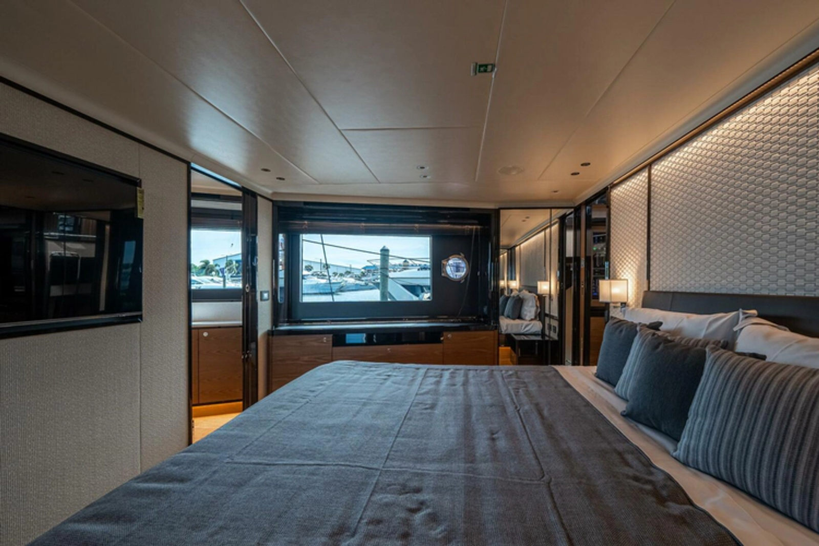 The 68 Navetta layout offers incredible volume for its size, featuring a bright and airy salon, a true on-deck master, and guest accommodations thoughtfully arranged for privacy and comfort. This vessel features a 4-cabin, 3-head layout plus a dedicated crew cabin aft with additional access into the engine room for convenience.