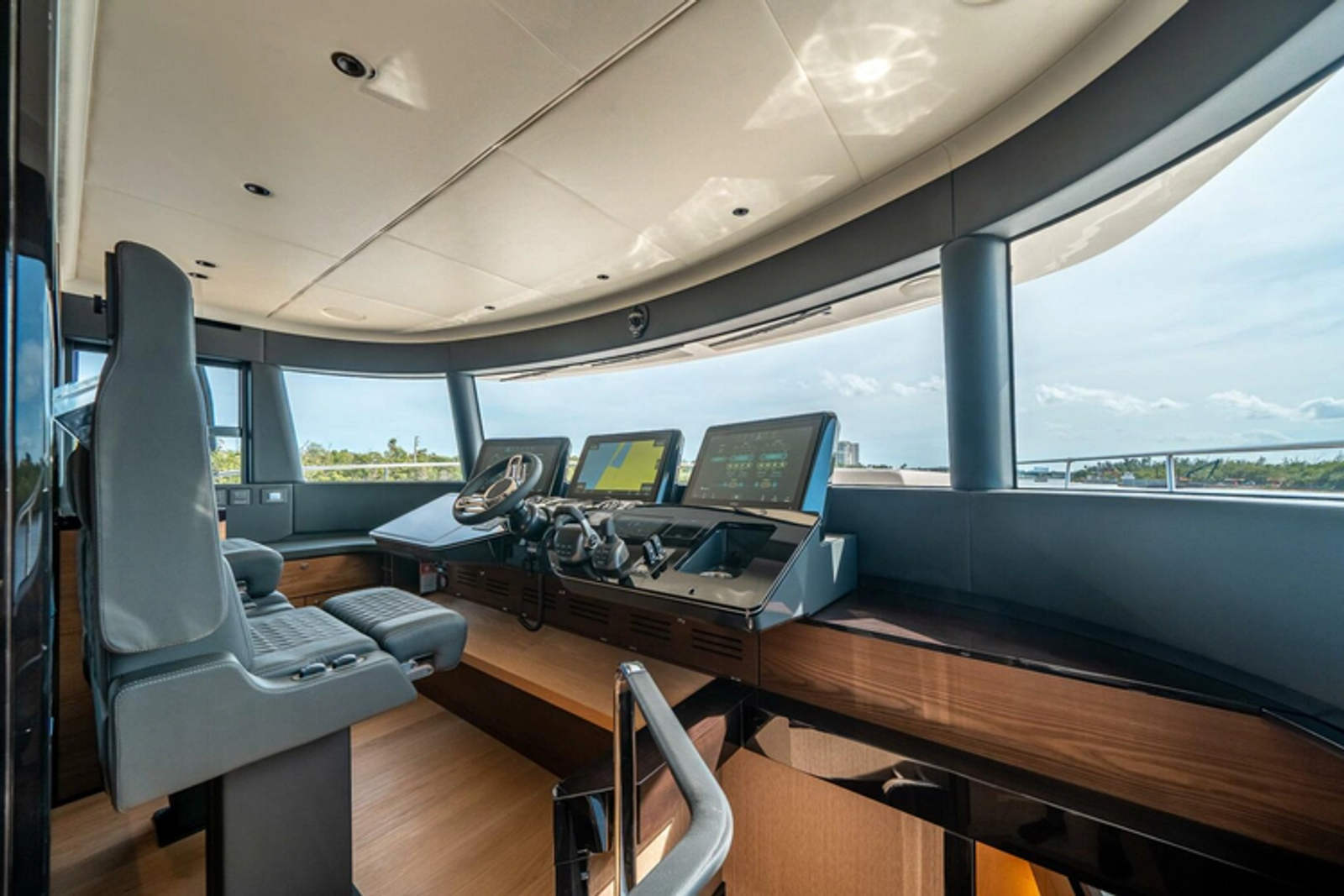 - Electrically adjustable captain seat made of anthracite grey-color leather with footrest and GPS keyboard on right armrest.