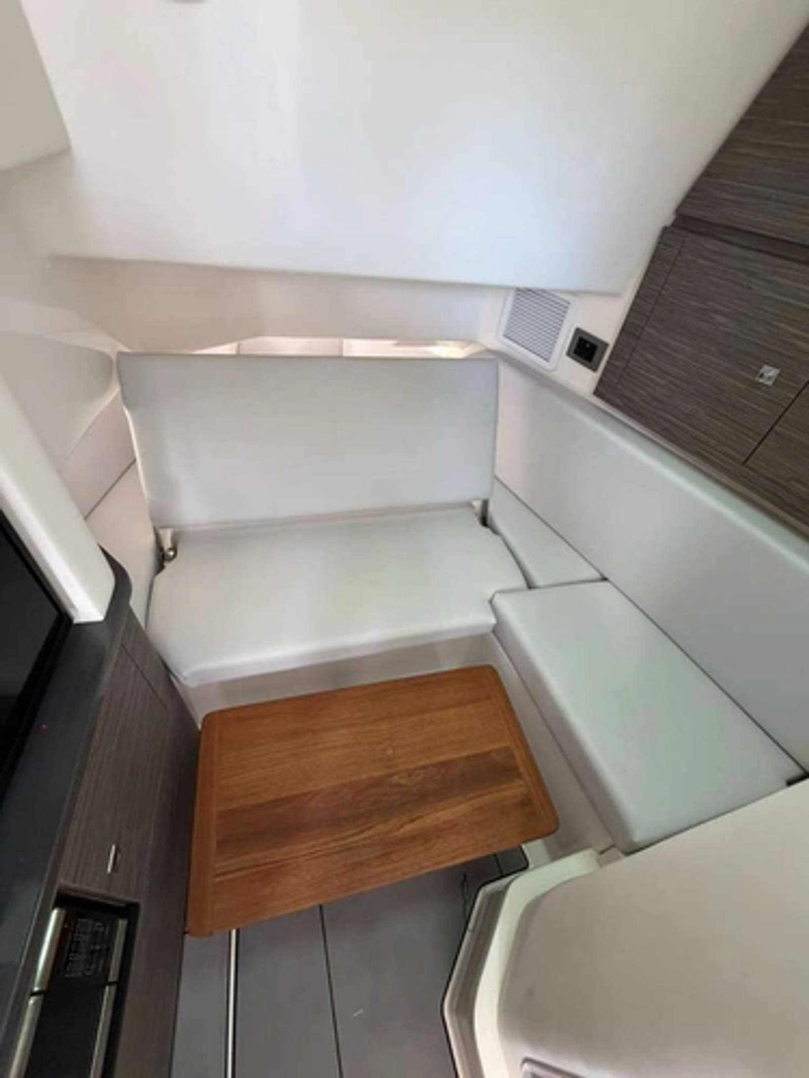 - Bow table with teak insert and filler cushion combo
