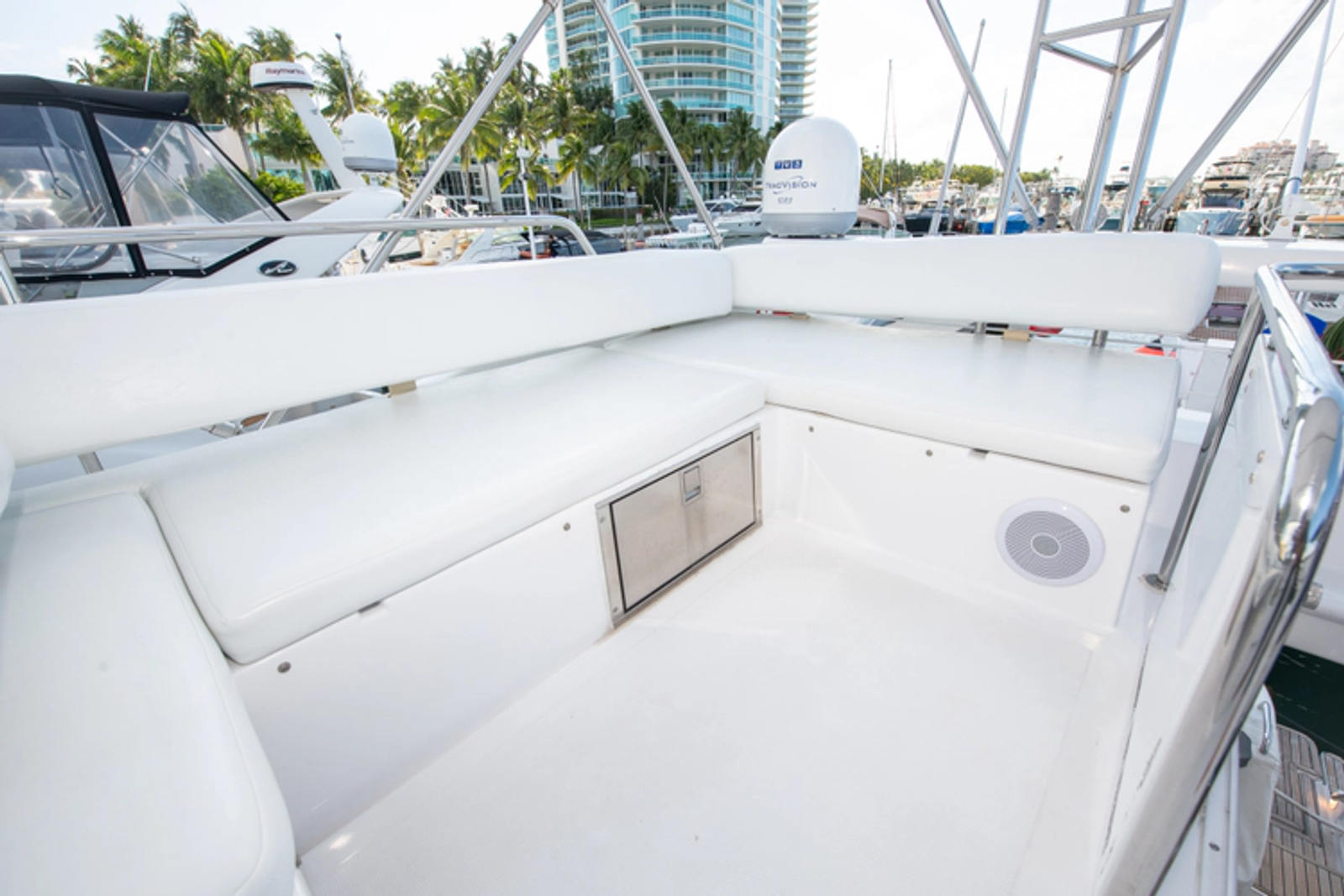 his 2017 Azimut 42 Fly is a stunning example of Italian craftsmanship and design. The quality of life aboard is enhanced by details that make all the difference: Exclusive up & down swim platform and a sun-pad at the bow. The flybridge on this 42 Azimut is a perfect spot for enjoying the view while underway, featuring ample seating to soak in the sun. The flybridge is accessed via a staircase from the cockpit and is fully enclosed with a bimini top.