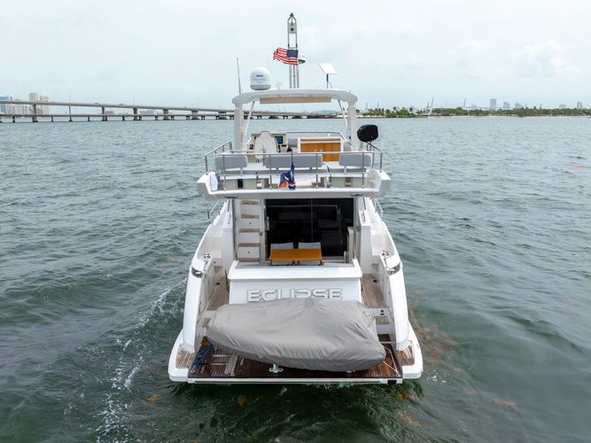 Eclipse” is a 2016 Azimut 50 Fly, professionally maintained by a full-time captain with all services up to date—engines, turbos, generator, and Seakeeper gyro included. The boat was recently bottom painted and is routinely waxed and polished. Privately used by one family and never chartered.