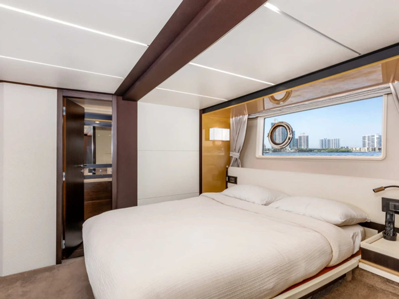 - Full beam master suite amidships with ensuite