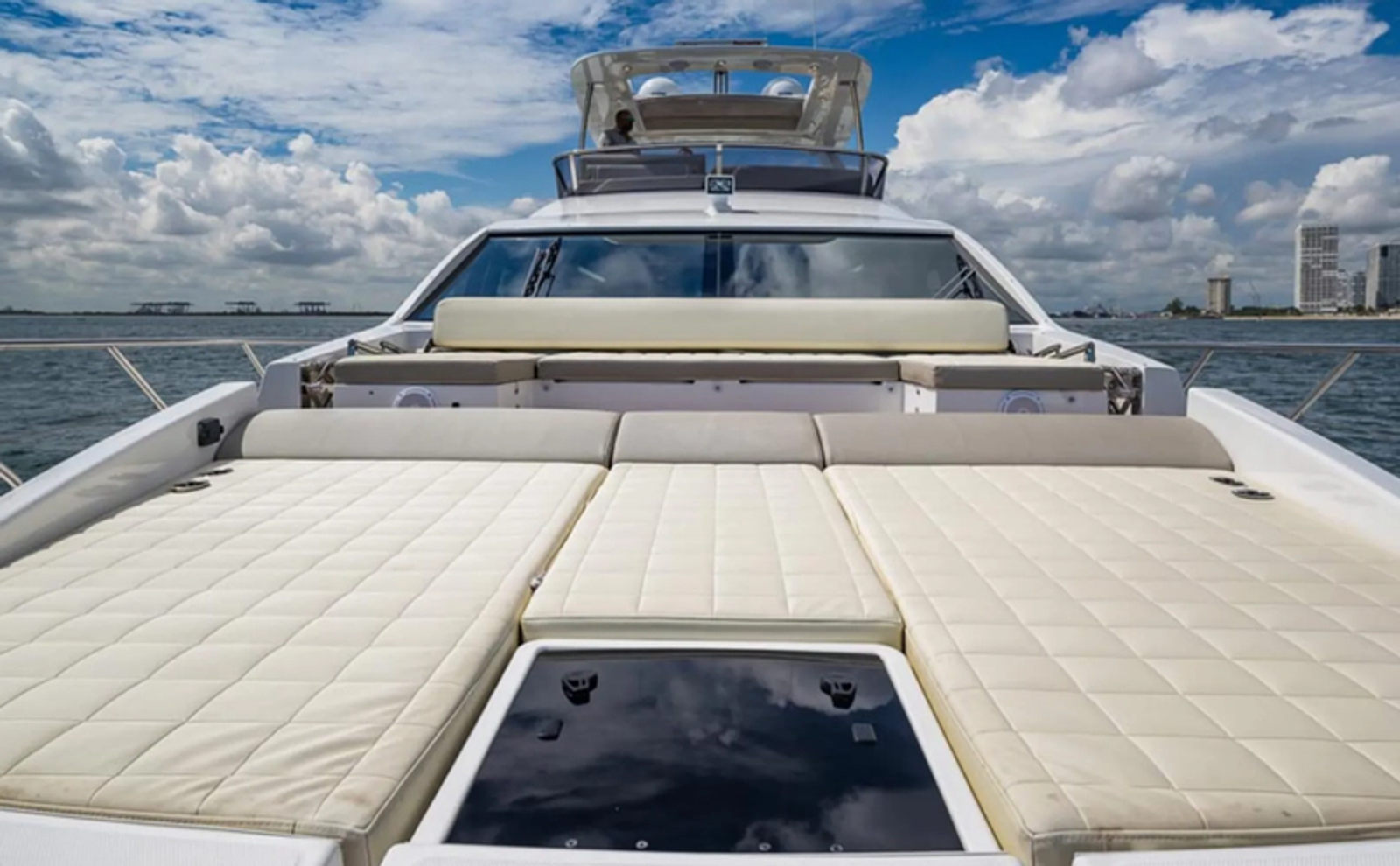 - Aft flybridge lounge and sunbathing areas