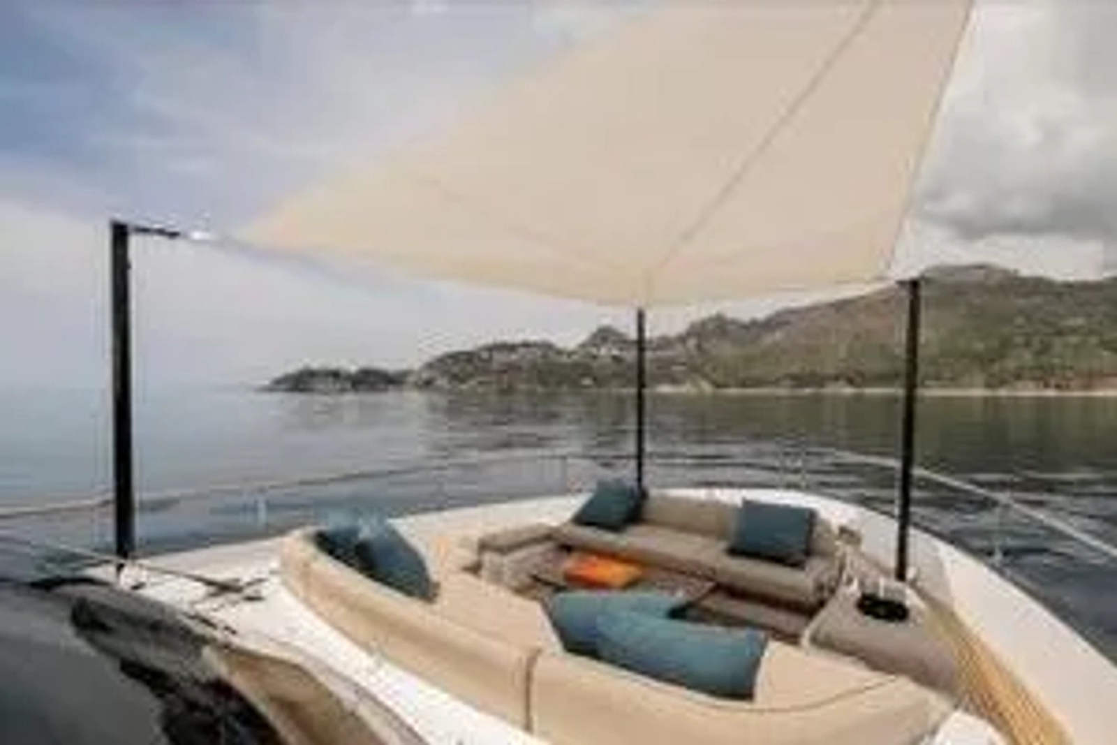 Shades all around - all windows and cockpit have side mesh shades. The bow and aft flybridge also have carbon fiber poles and sun shade sails.