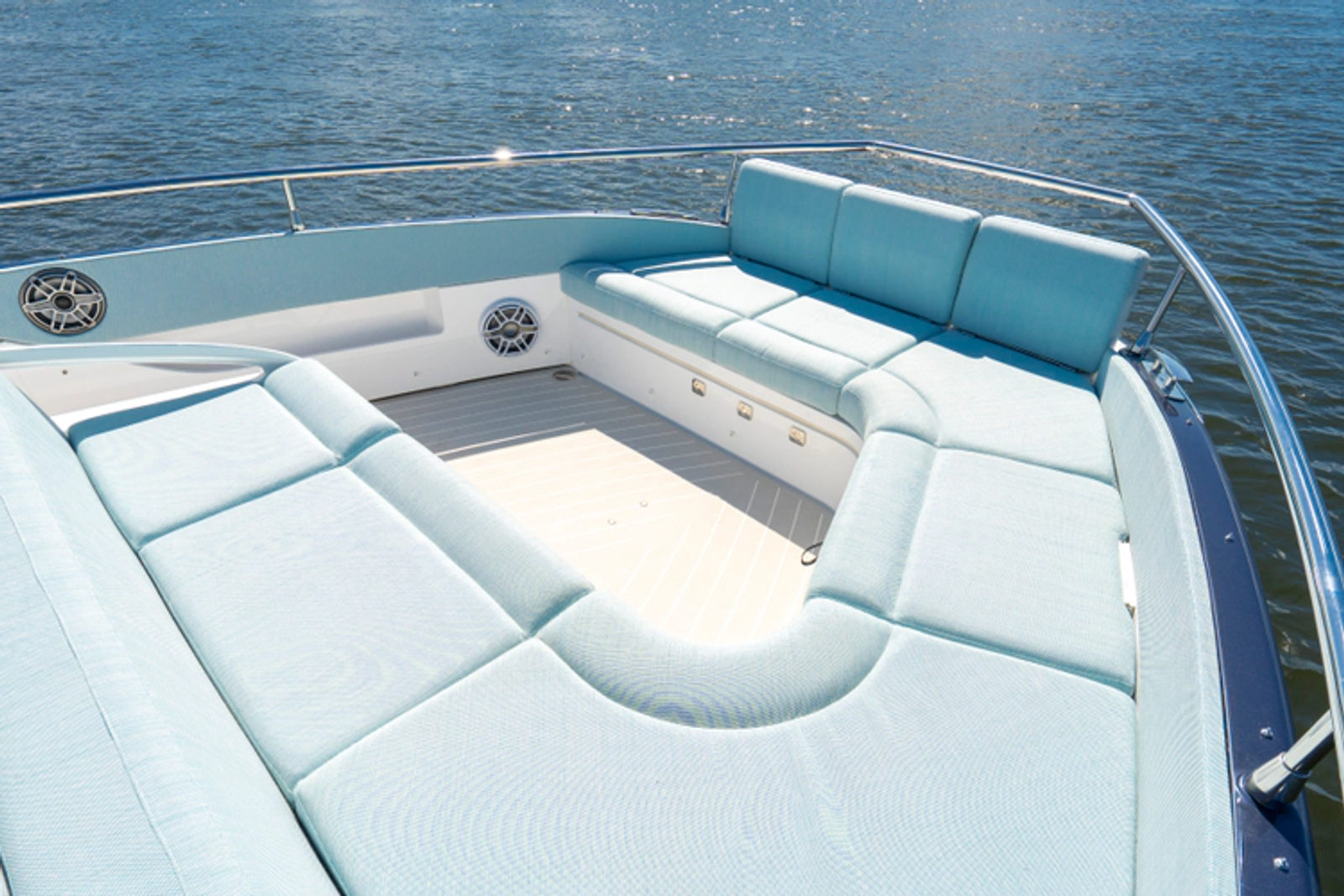 - Sunbathing cusions on bow with foldable backrest