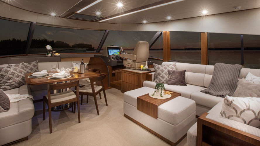 Discover the skipper’s helm forward. The lower helm and expansive helm in the Daybridge both feature state-of-the-art navigation aids, simple touchscreen operation and effortless joystick control. Volvo Penta Inboard Performance System (IPS) delivers exhilarating performance and impressive economy.