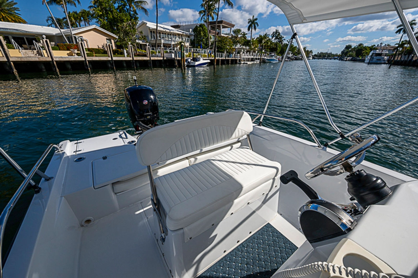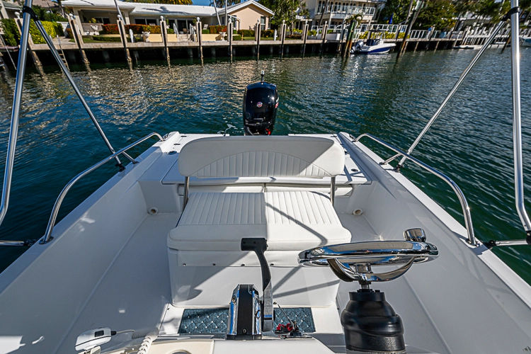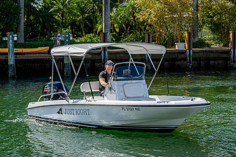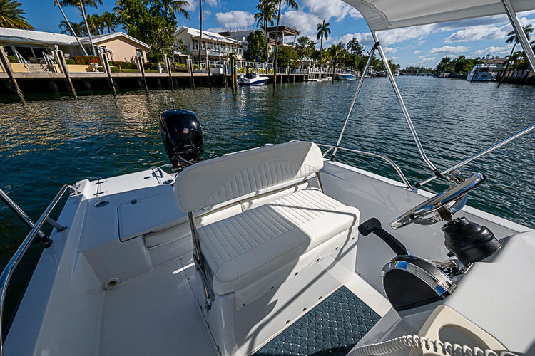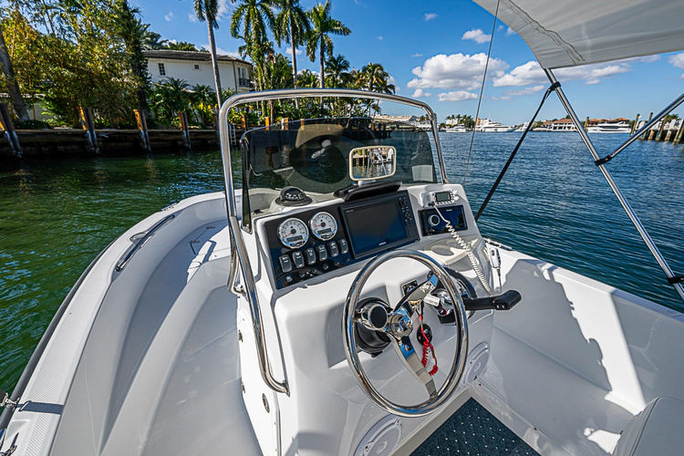 In 2022 andquot;Just Rightandquot; was purchased as a tender to a large motoryacht program and was meticulously planned to be made andquot;Like-Newandquot; and re-designed to match the Mothership. The hull was completly stripped and re-painted using Awl-Grip paint and a new rubrail was added, dditionally fresh bottom paint was appllied for anti-fouling properties. The interior of the boat was completely stripped and re-painted, all new cushions were made for the seating areas, and a new Mercury 150XL Pro XS was installed with new guages and controls. A modern sleek new dash was fabricated to house the Garmin multifunction display, stereo, and VHF. For added comfort a folding Bimini top was installed. For safety a fire extinguisher was mounted at the console and an easy to access 110V outlet for the built-in onboard charging system. Finally, on the transom you will find the attached deployable swim ladder and access to the battery switch.