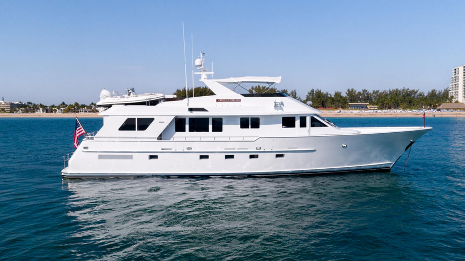"WELL DONE" is an excellent example of a quality Burger Motoryacht. She was manufactured by Burger Yachts in Manitowoc, WI in 2000 and designed by Don O'Keefe. Internationally known, Burger is one of the finest custom boat builders in the world. The yacht is configured with a (4) stateroom and (6) head layout with a mid-ship full beam master accessed through a private staircase in the salon. "Well Done" has just recently completed a nearly (2) year refit process in which all critical systems onboard have been upgraded, serviced and or replaced as needed. In addition to her mechanical areas the entire yacht was completely repainted from the waterline up and the bottom was completely stripped and recoated with barrier coat and bottom paint. Additionally, all running gear was removed, serviced and reinstalled. A full new Garmin electronics suite was installed into a newly redesigned dash as well as a new Nobletec / Time Zero computer system. For entertainment her AV equipment was upgraded and all new TV's were installed. On the interior the sofas and settee's were re-upholstered and all of the wood was re-varnished and walls repainted. New teak and Holley Amtico flooring was installed in the aft deck, heads and areas around the lower helm settee. All new linens and bed coverings were custom made and all interior carpeting was replaced. On the exterior all new soft goods were installed and a new Bimini was added overhead for shade. The davit system was completely rebuilt and repainted as well as the included 14' Nautica rib tender. Most recently during the Ocean Reef Vintage Weekend “Well Done” was awarded the "Nicest refit of a Traditional Motoryacht” 2025. She was also featured in Power and Motoryacht magazine and a full walkthrough video was also hosted by PMY Magazine.