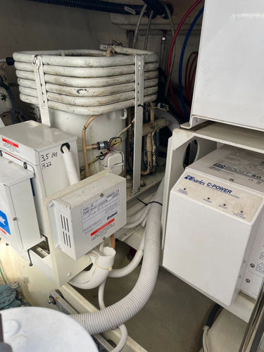 Shipand#39;s A/C power is provided by a Kohler 23 KW diesel genset (with approx 950 hours.) There is also a 2.6KW (2600 Watt) Inverter (new in 2018)DC service is provided by separate 12V and 24V battery systems, maintained by their own Charles charging systems.