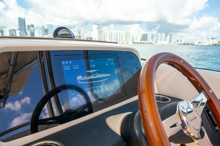 Equipped with twin Mercury Verado 300 DTS engines with Joystick Piloting, the Calypso offers exceptional maneuverability and control, making docking a breeze. The Seakeeper Ride automatic trim tabs enhance stability, ensuring a comfortable ride even in choppy waters.