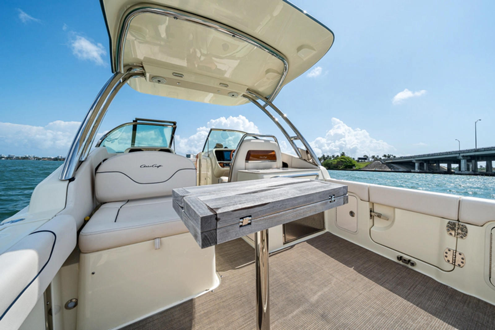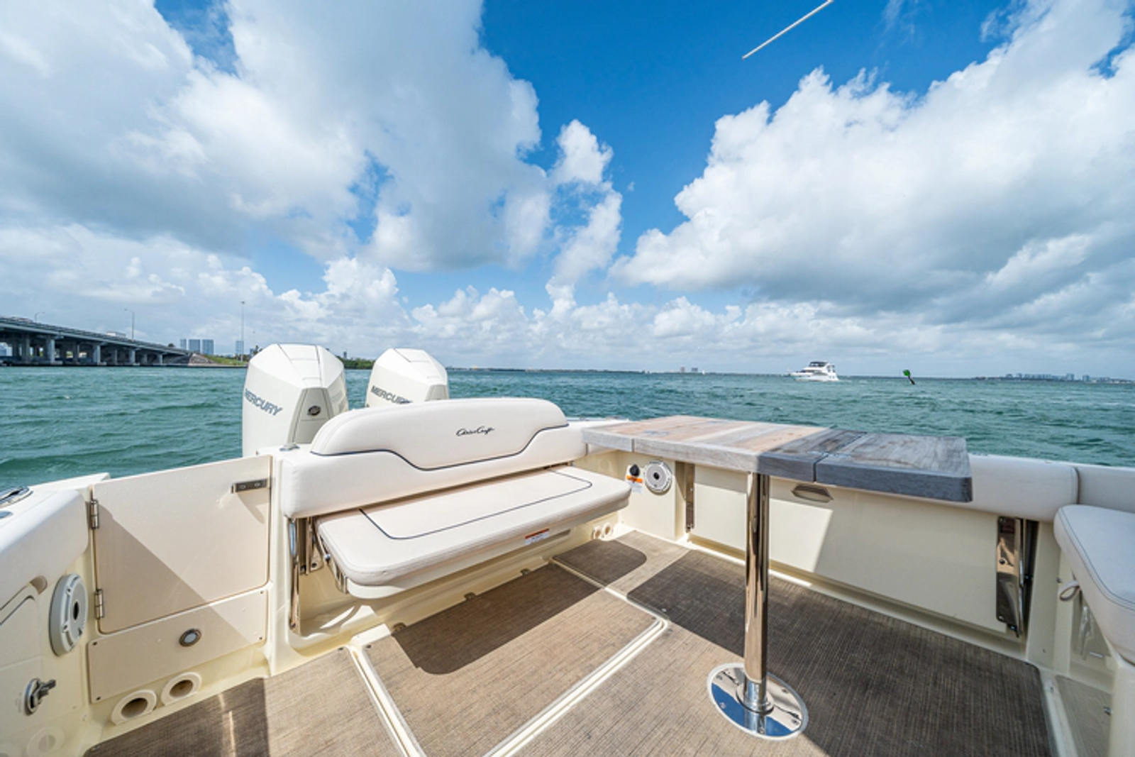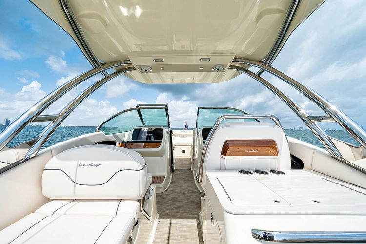 She is backed by the remaining Chris-Craft limited warranty and Mercury factory warranty, along with a remainder of a 6-year transferable Brunswick Premier Passport extended warranty; providing an added layer of confidence and peace of mind.