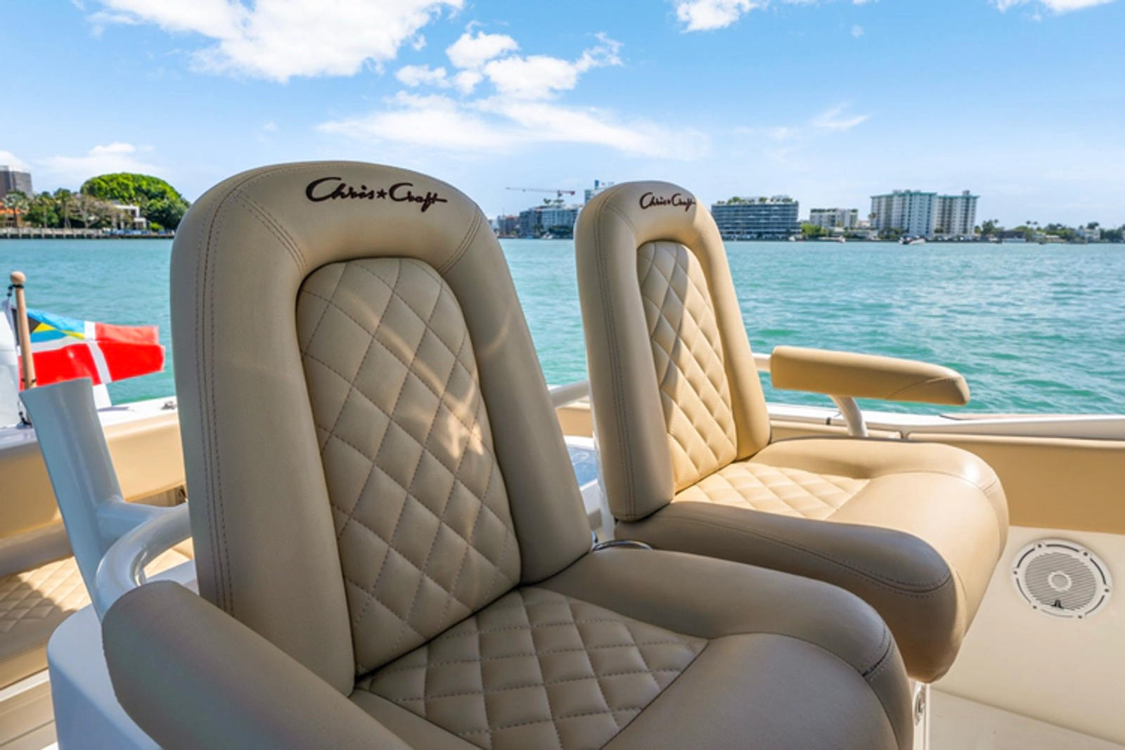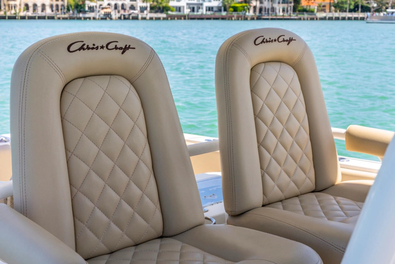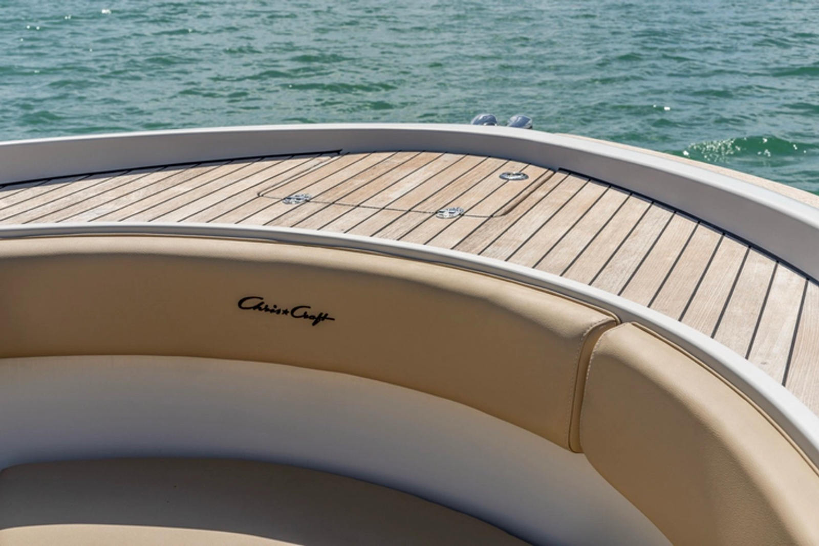 This Chris-Craft has been extensively updated and maintained, with over $100K invested since 2018 and all receipts available. Completely refit in 2018 and repowered in 2025 with twin Suzuki 300s, she offers strong performance with a 30 mph cruise and 52 mph top speed.