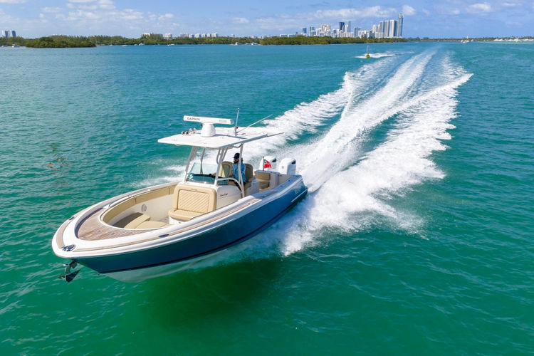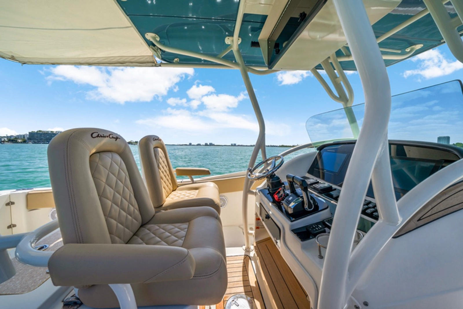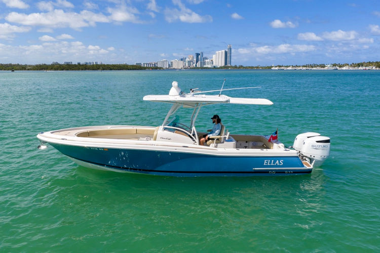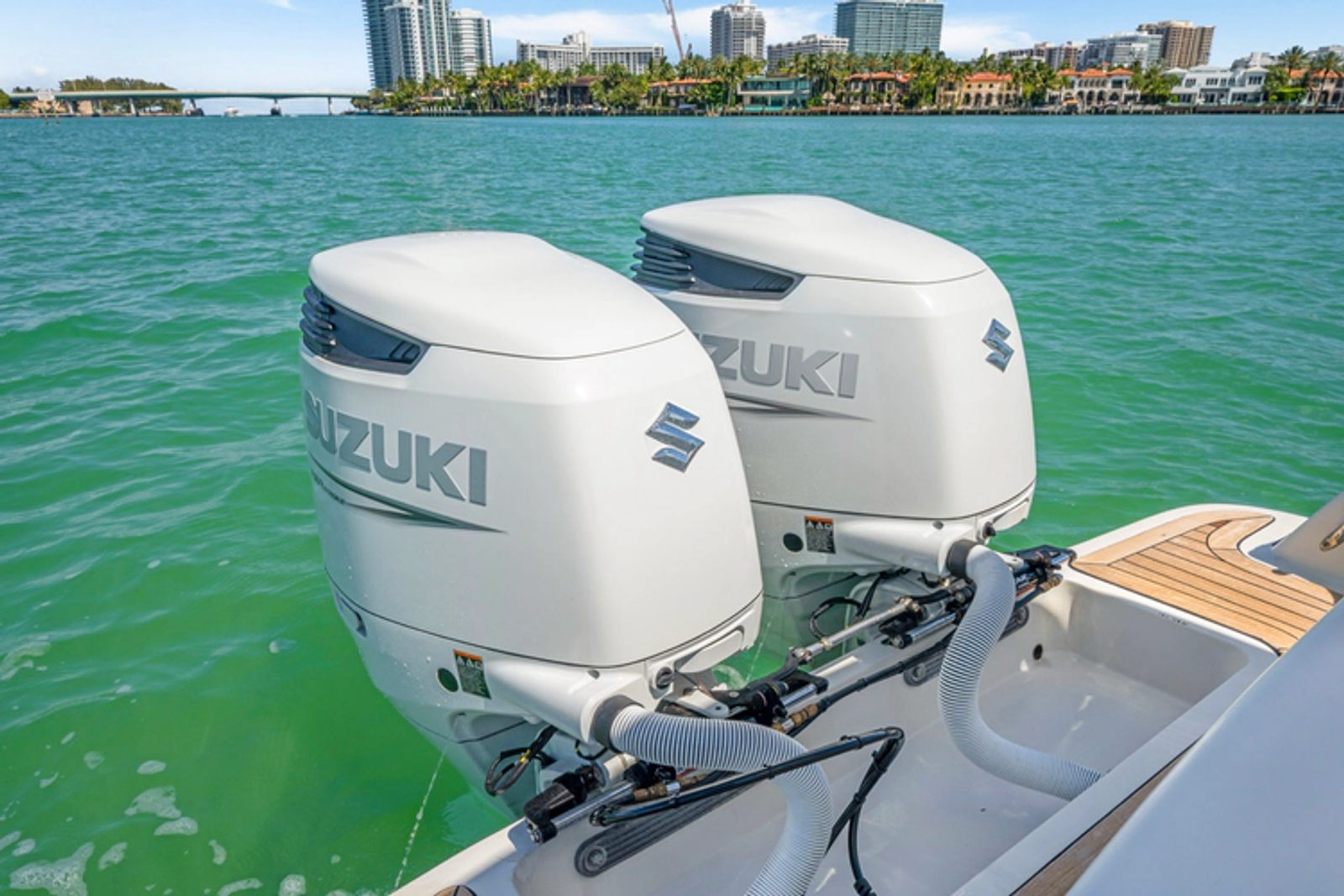 This Chris-Craft has been extensively updated and maintained, with over $100K invested since 2018 and all receipts available. Completely refit in 2018 and repowered in 2025 with twin Suzuki 300s, she offers strong performance with a 30 mph cruise and 52 mph top speed.