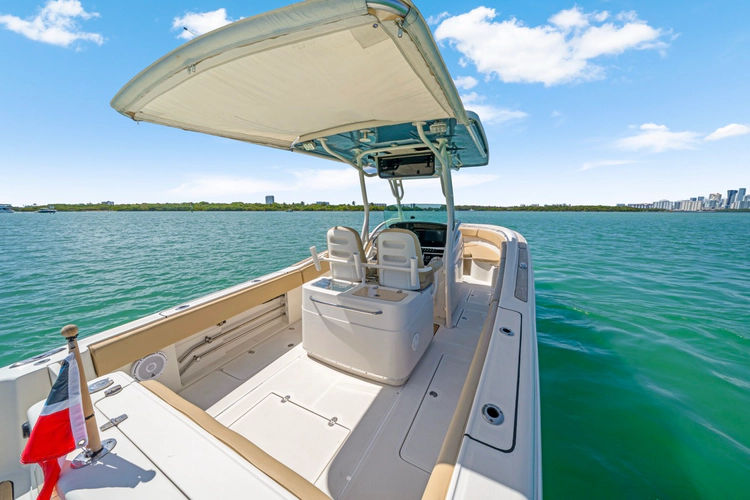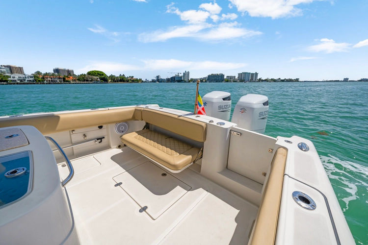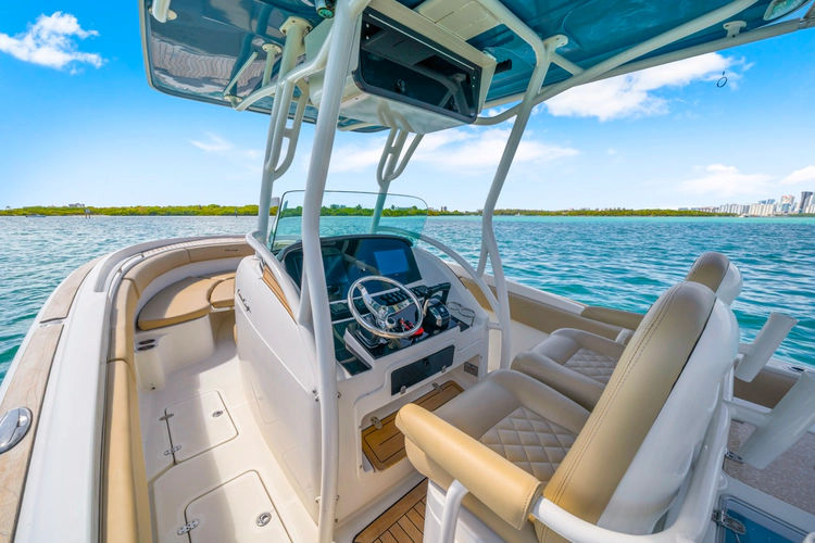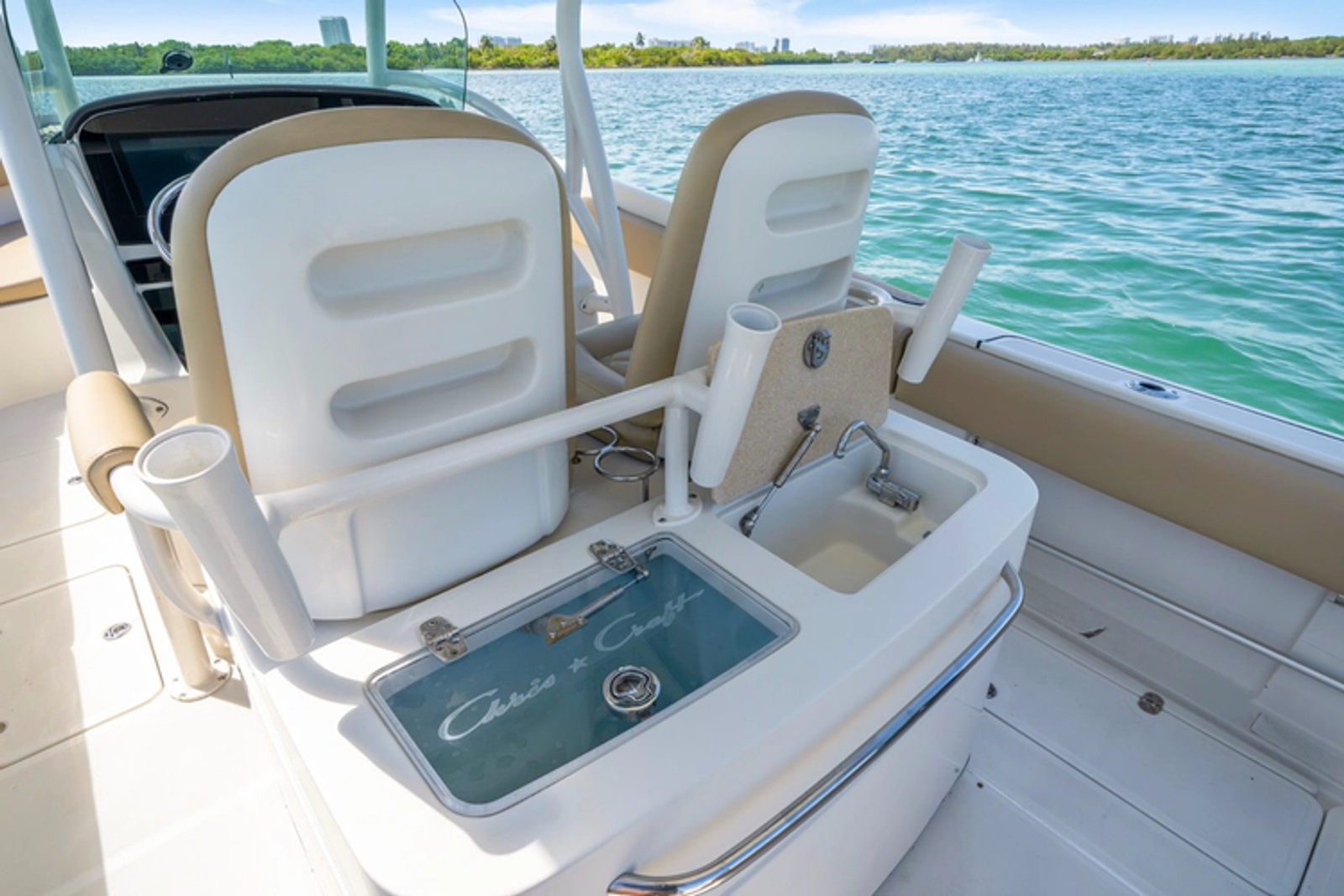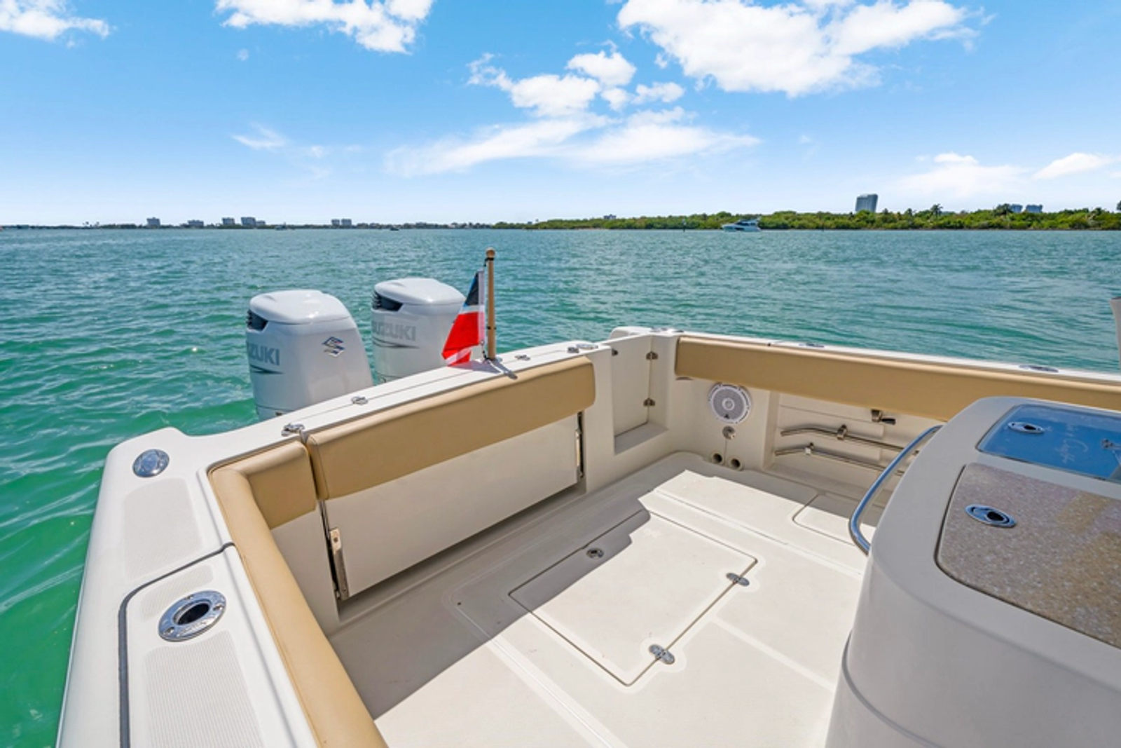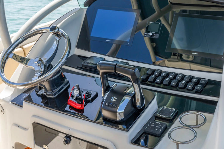 This boat has been thoughtfully upgraded throughout, combining modern power, Garmin electronics, premium audio, custom shade systems, and clean cosmetic updates. An excellent turn-key option for someone looking for a well-equipped, repowered center console with documented upgrades and strong overall presentation.