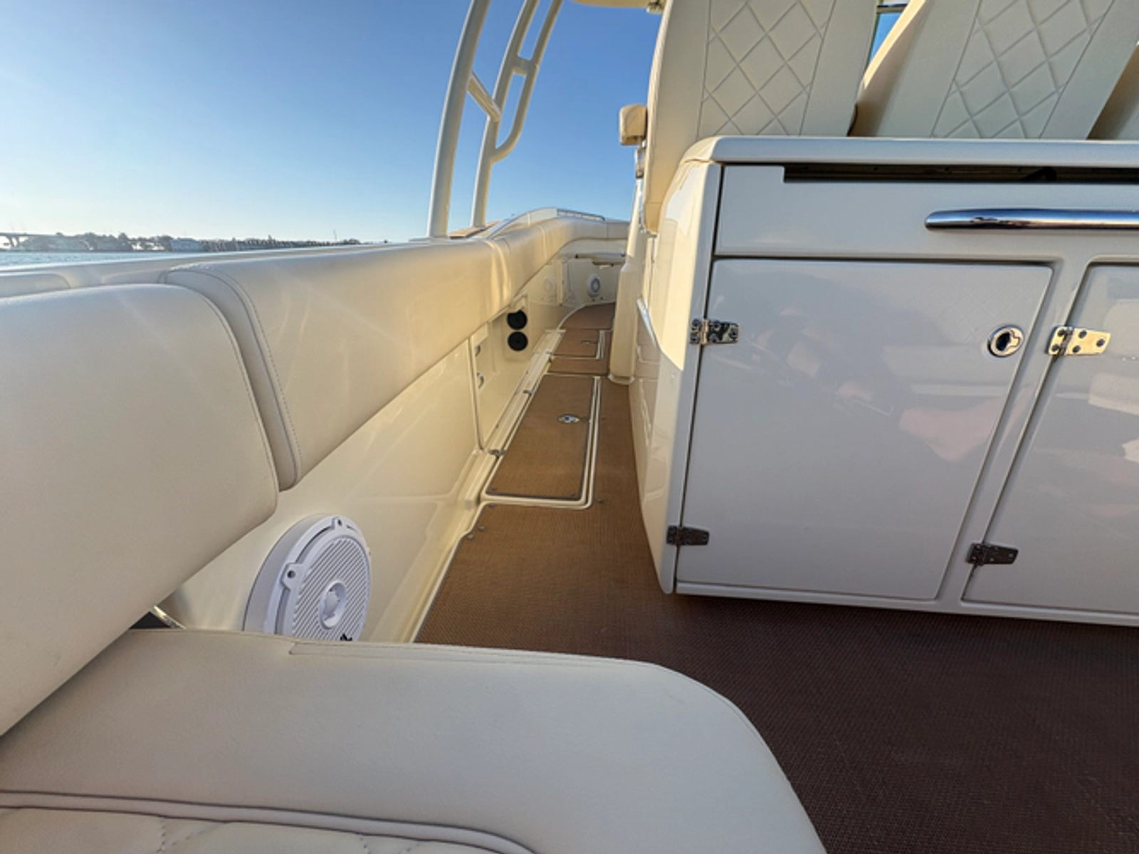 This 2015 Chris-Craft 34 Catalina is an exceptionally clean, one-owner example that has been meticulously maintained and high-and-dry stored its entire life. With only 139 original hours on her twin 350HP outboards from Yamaha Motor Company, this boat presents like an almost-new vessel.