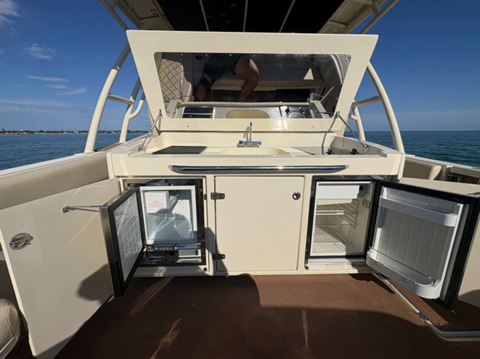Fully equipped for entertaining at the dock or sandbar:- Refrigerator