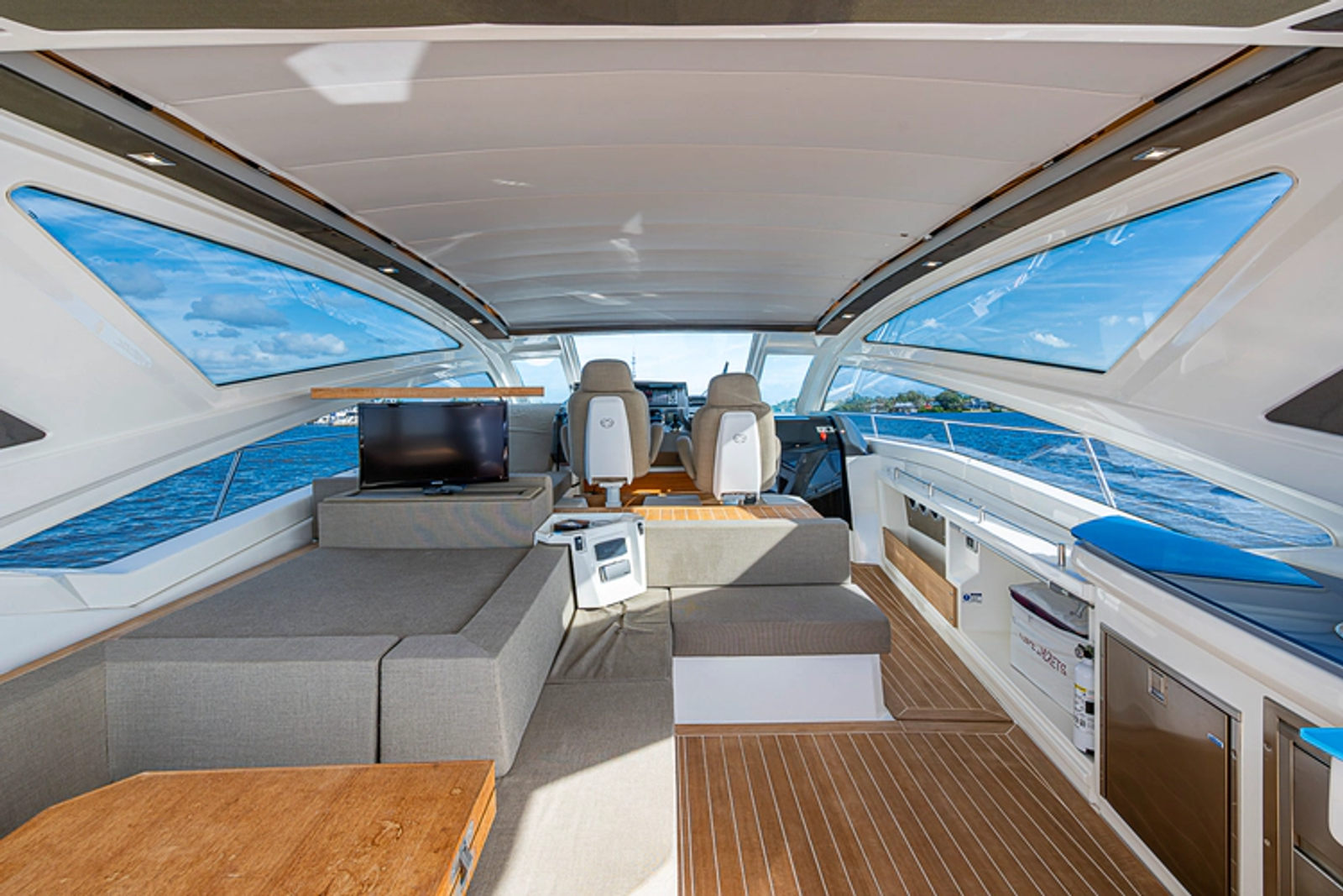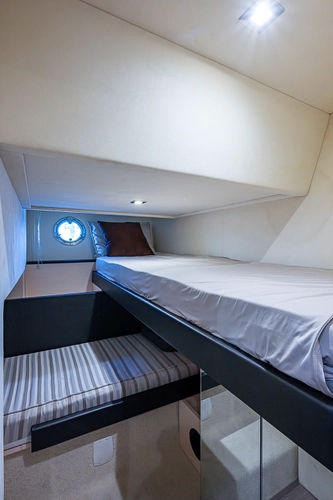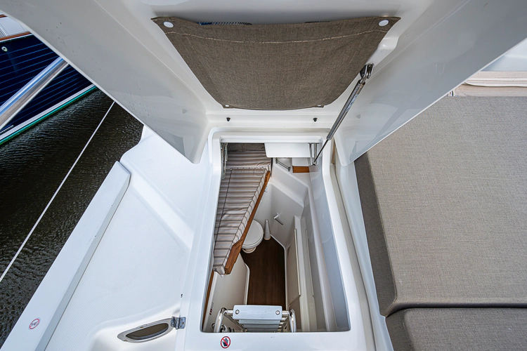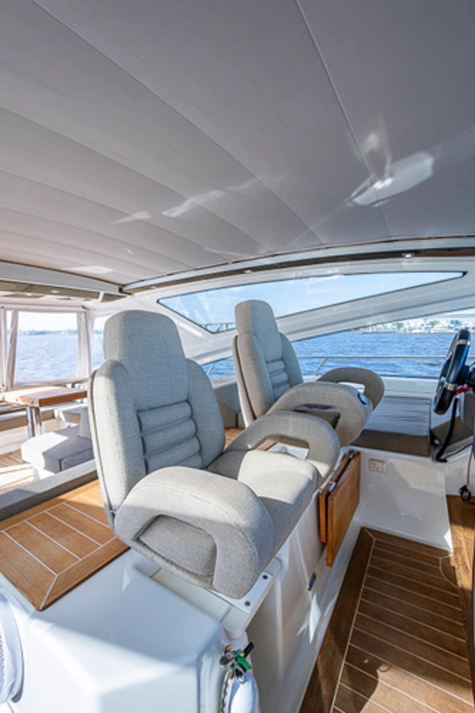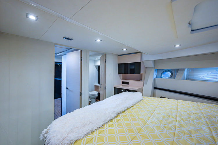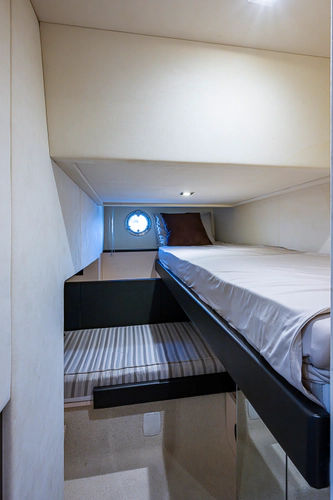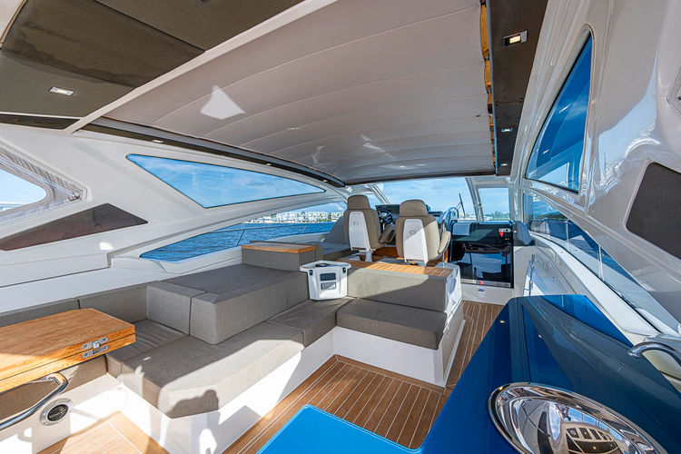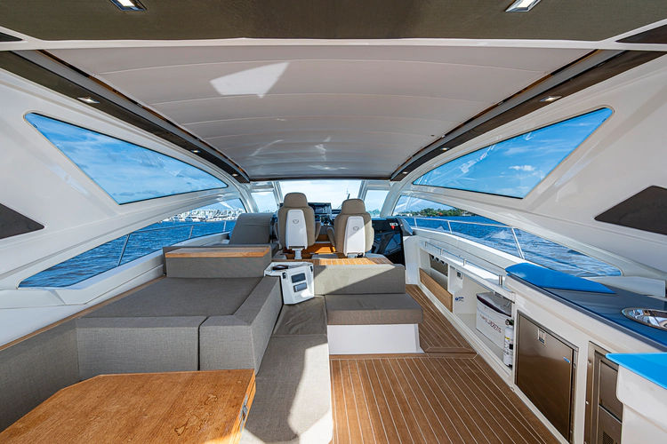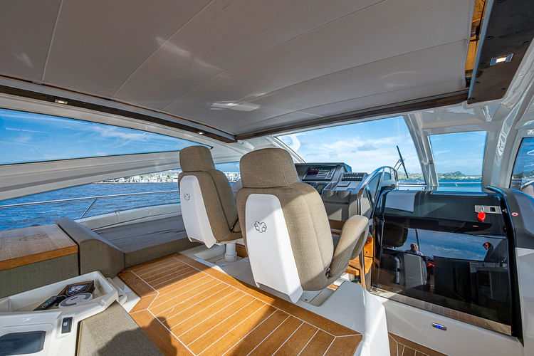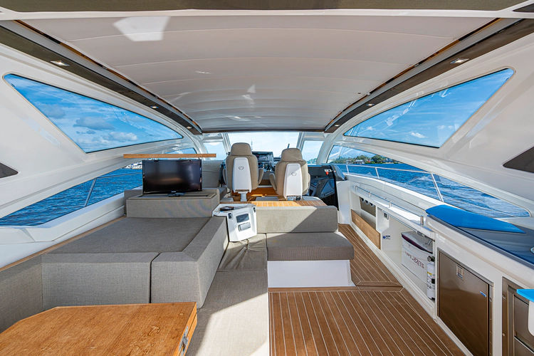 •Lounge to port of helm chairs•Centerline queen birth