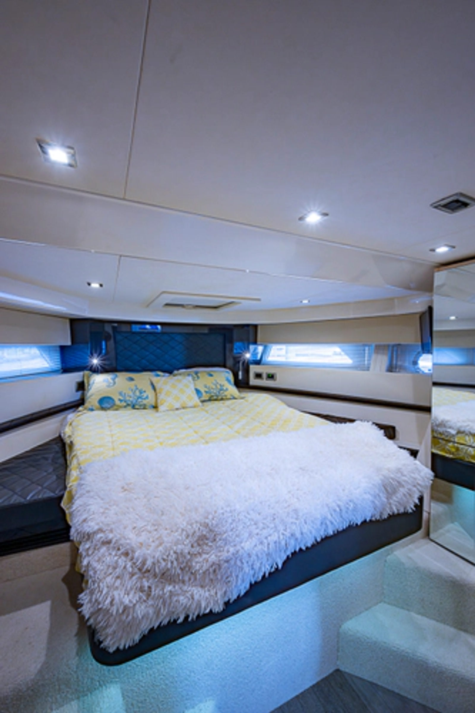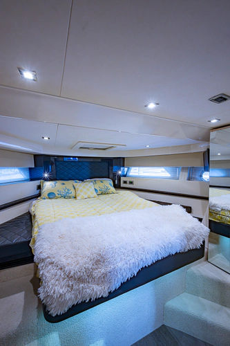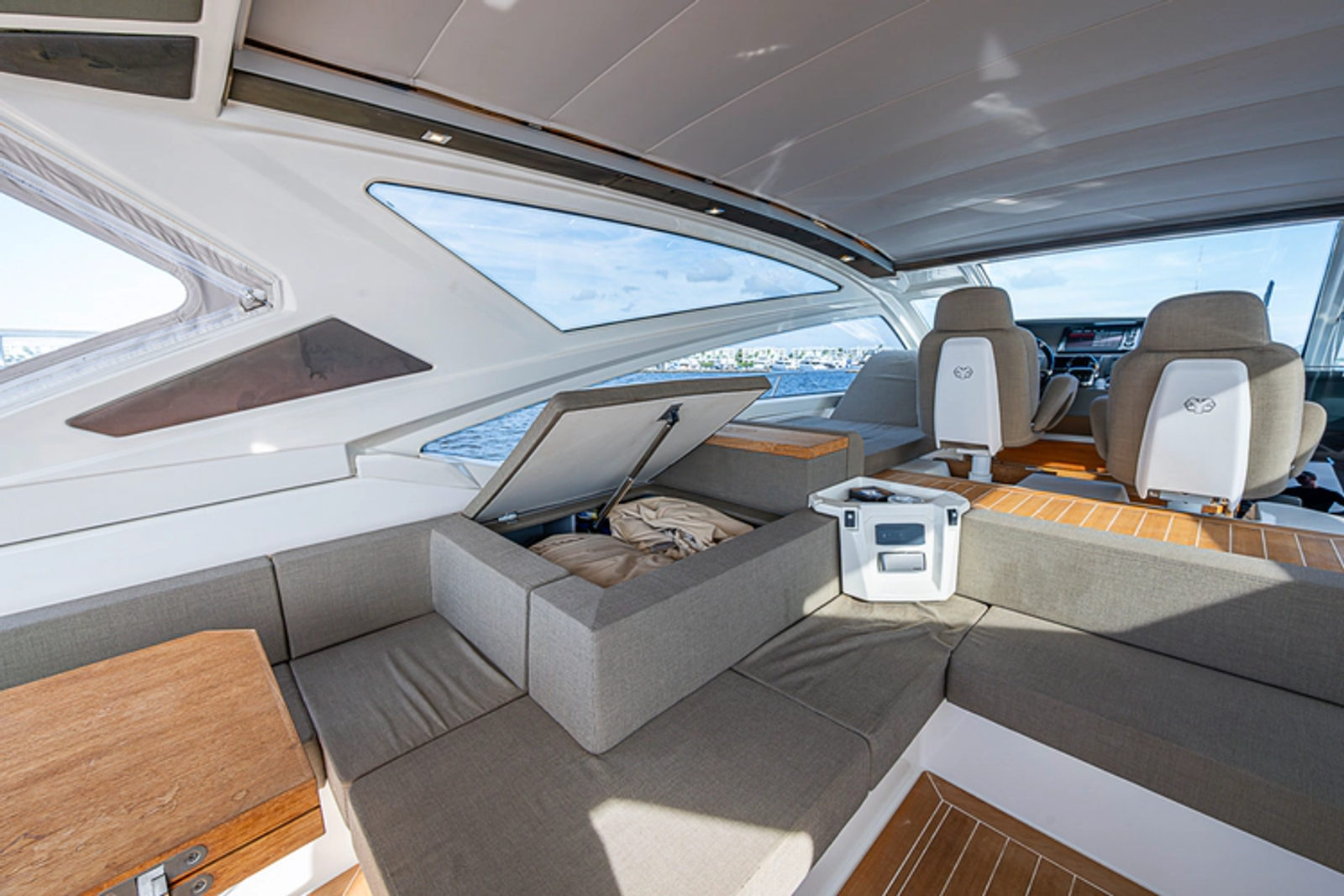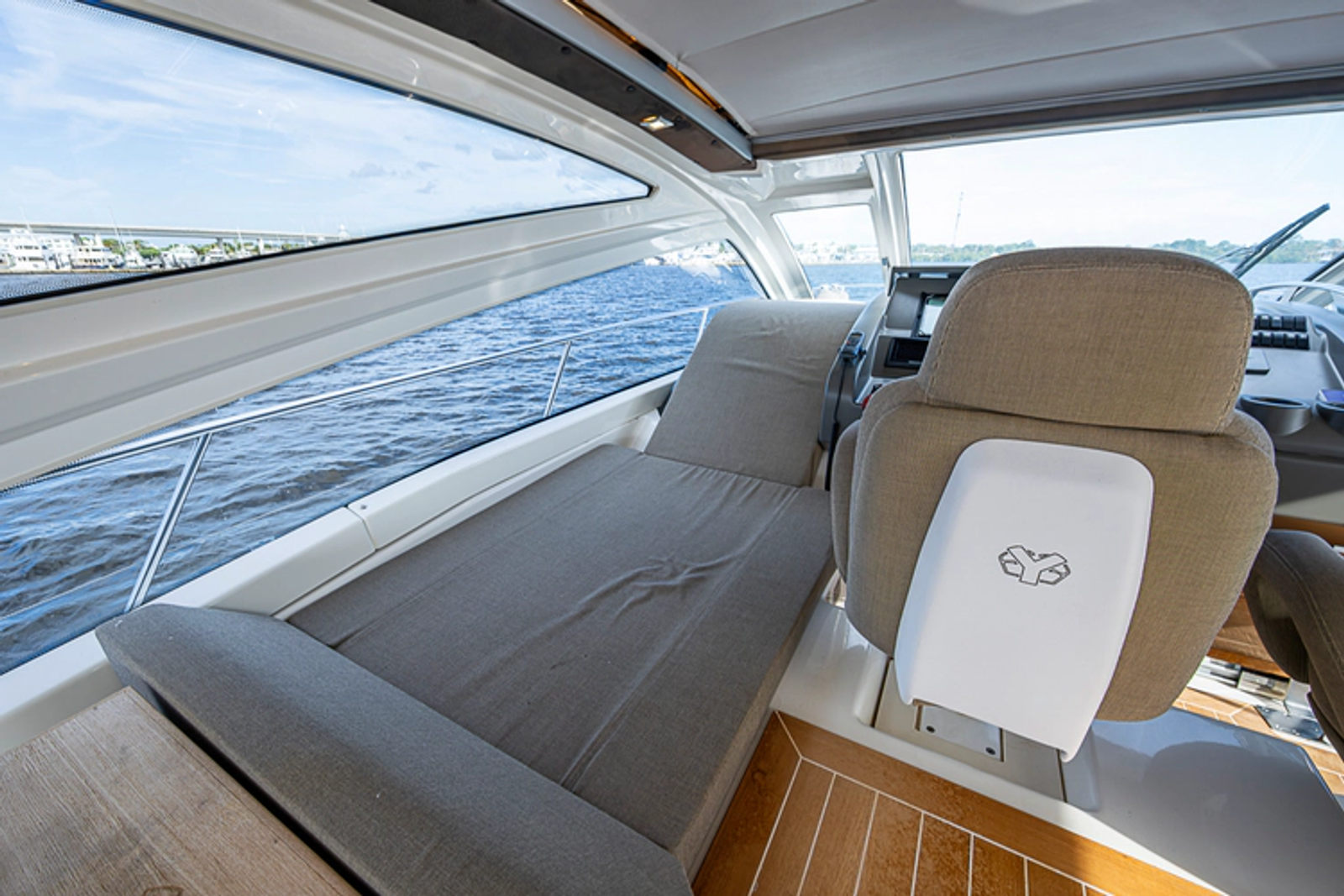 •Lounge to port of helm chairs•Centerline queen birth