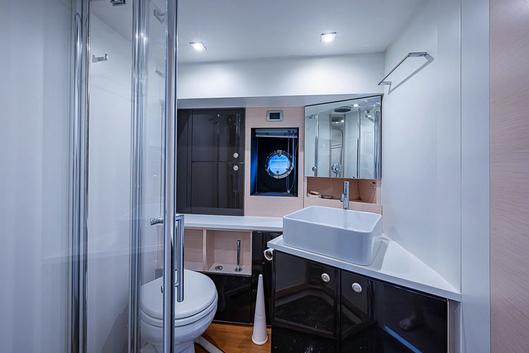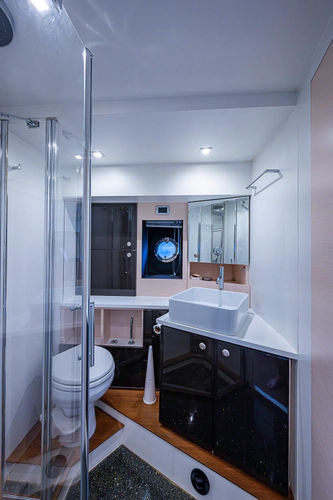 •Access to guest head/shower•L-shaped staircase with stainless handrail for easy entrance