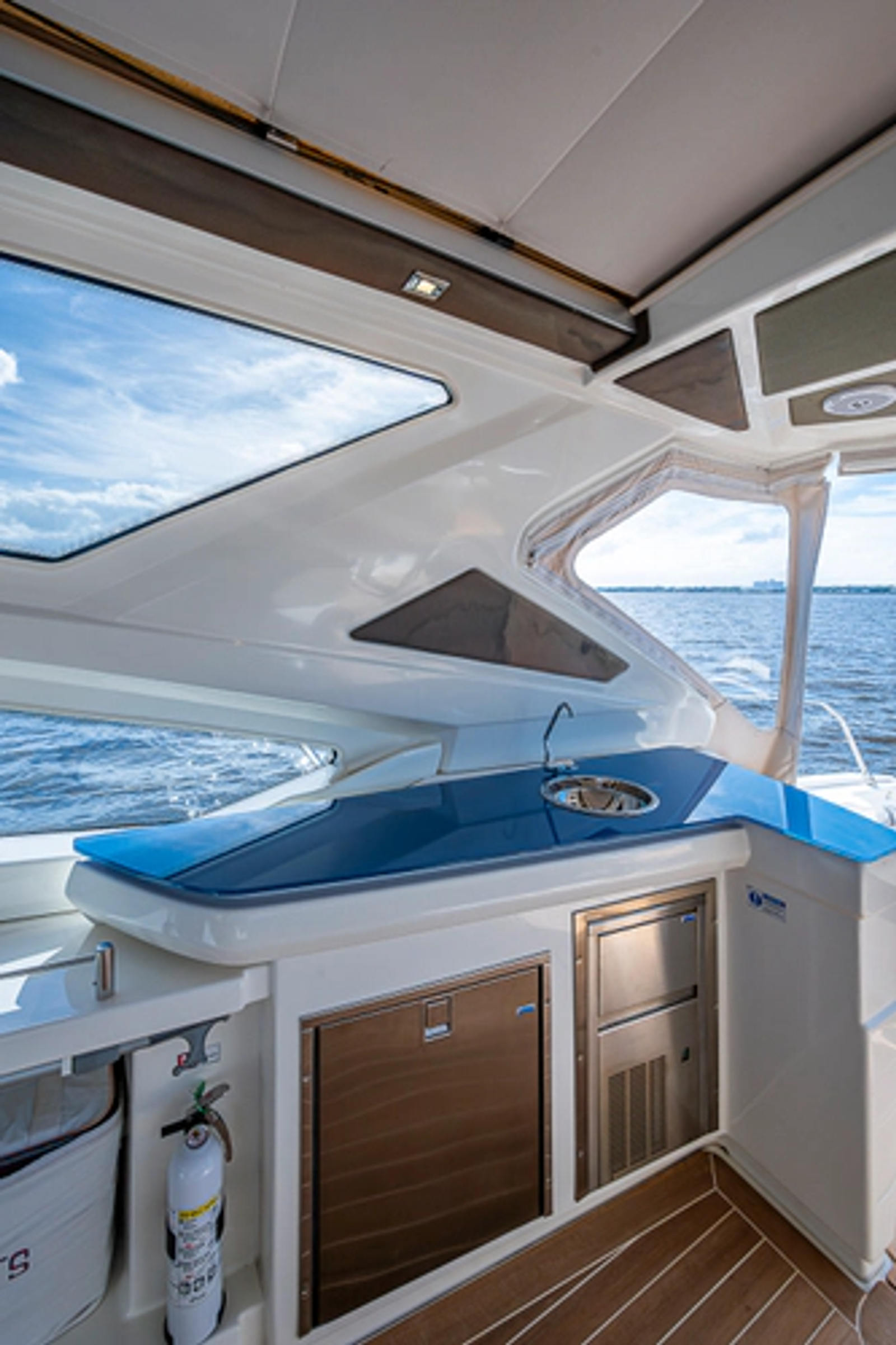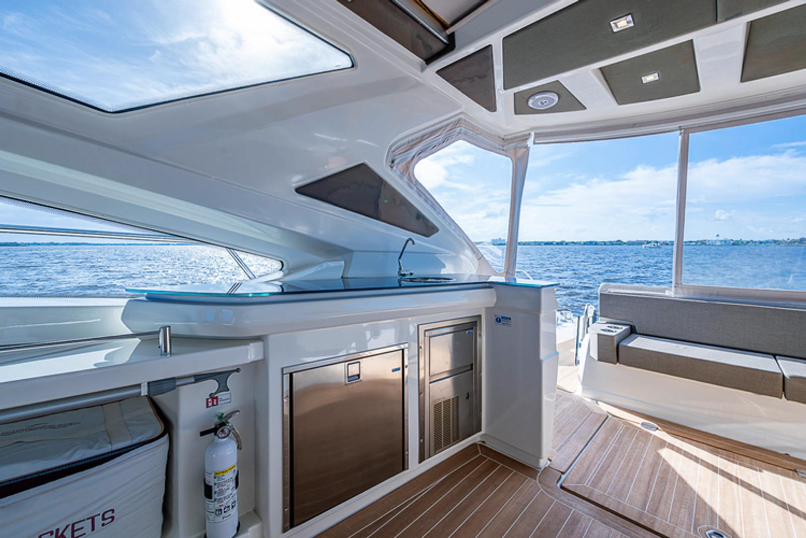 •Stainless steel fridge and ice marker to starboard
