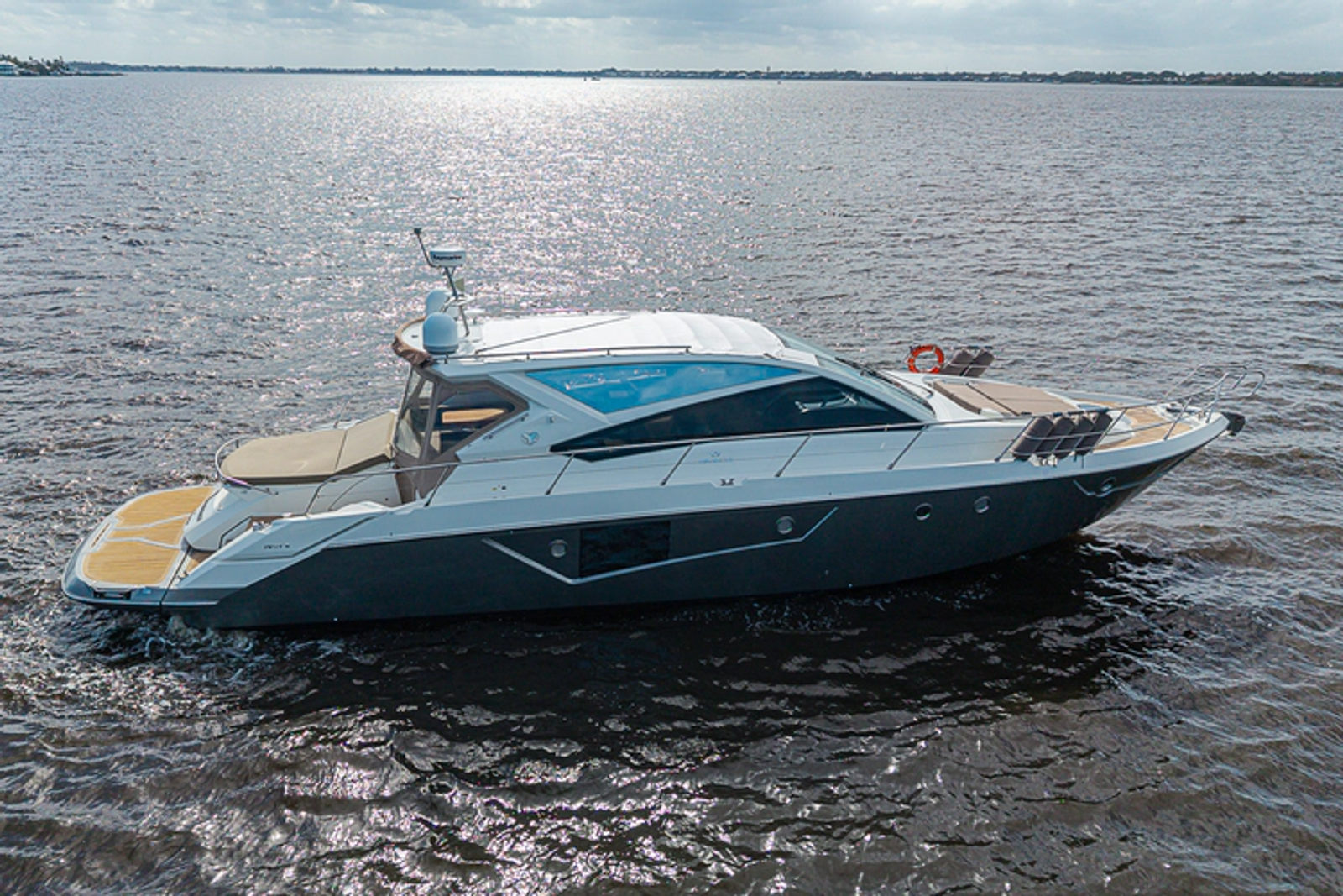 •Swim platform (880lb tender capacity)•Access portside of aft sun pad