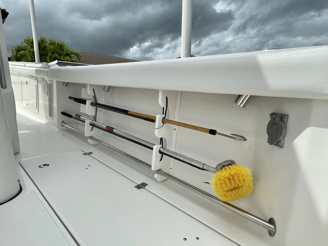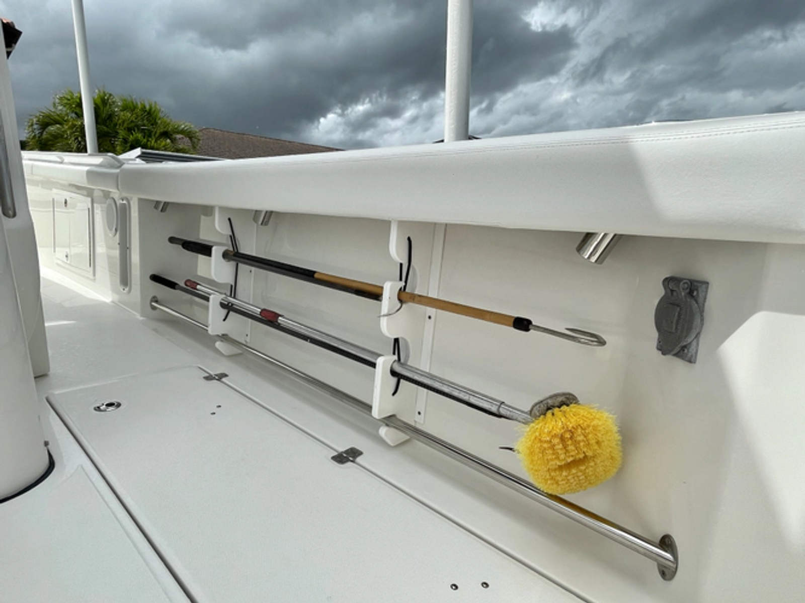- Fusion stereo system with JL Audio speakers & dive door remote (easy music control without climbing aboard)