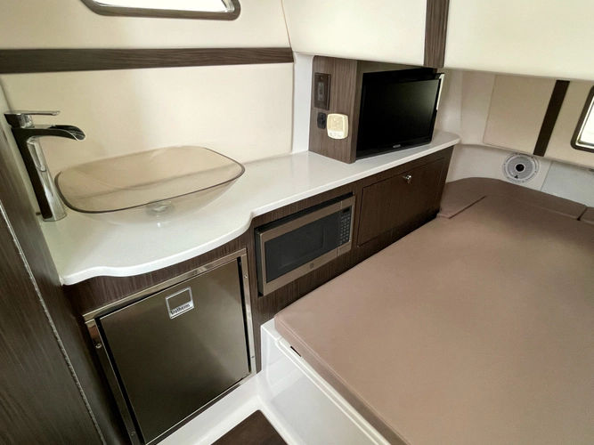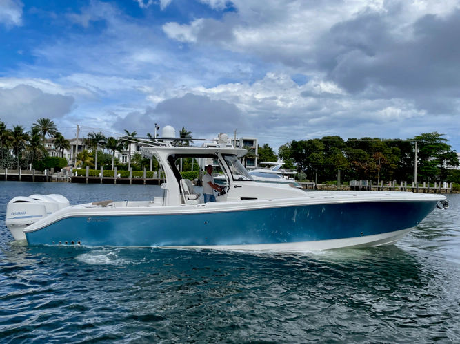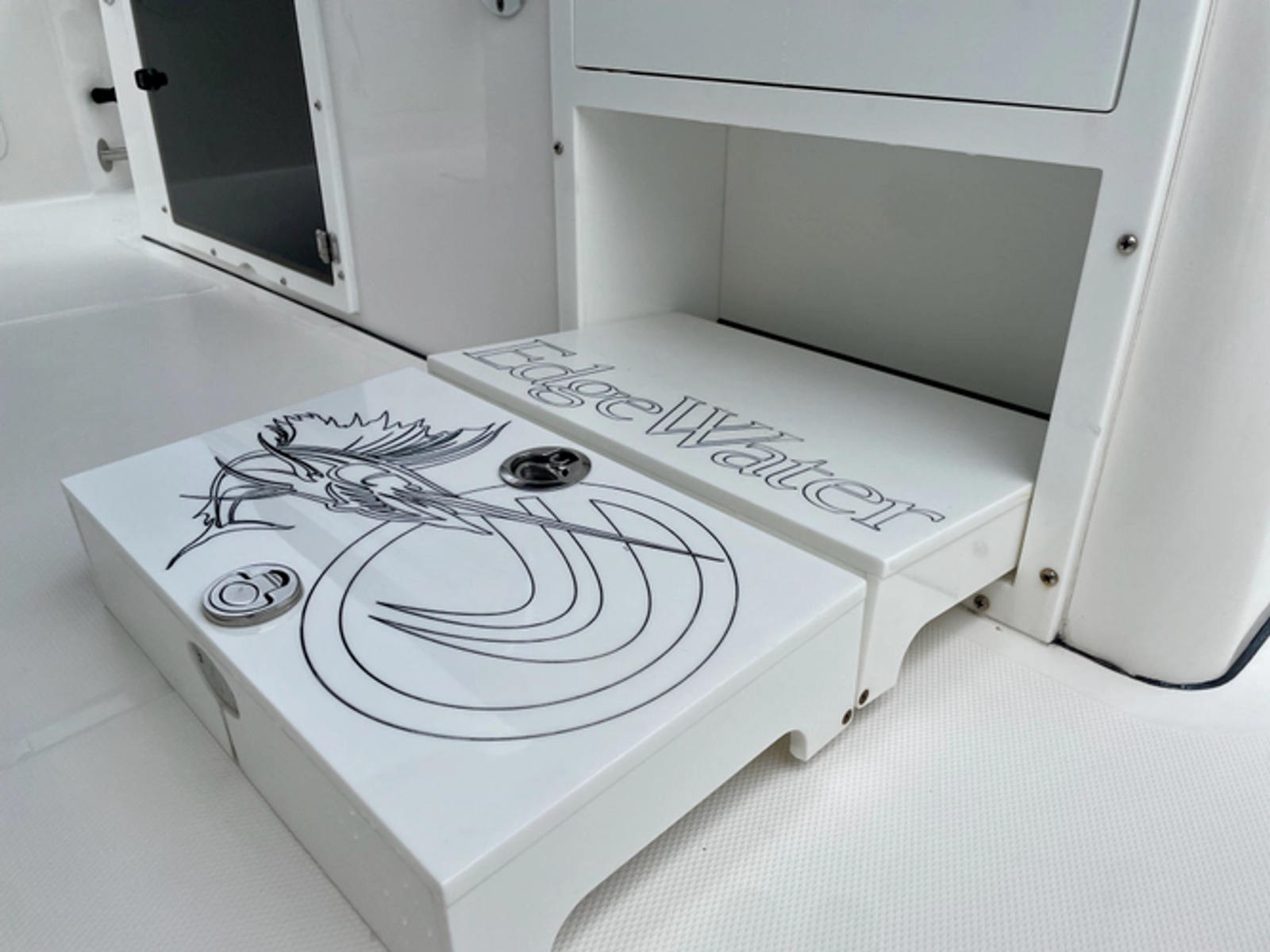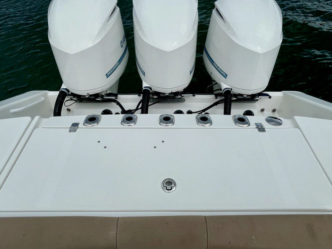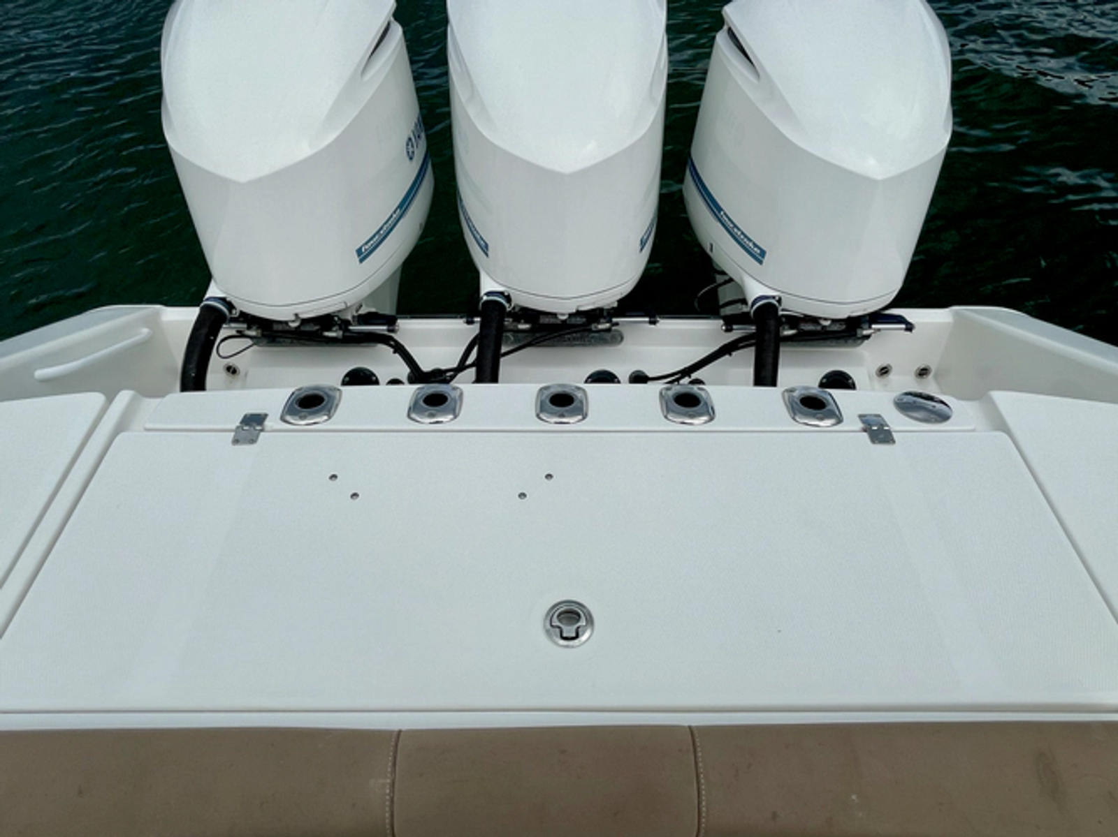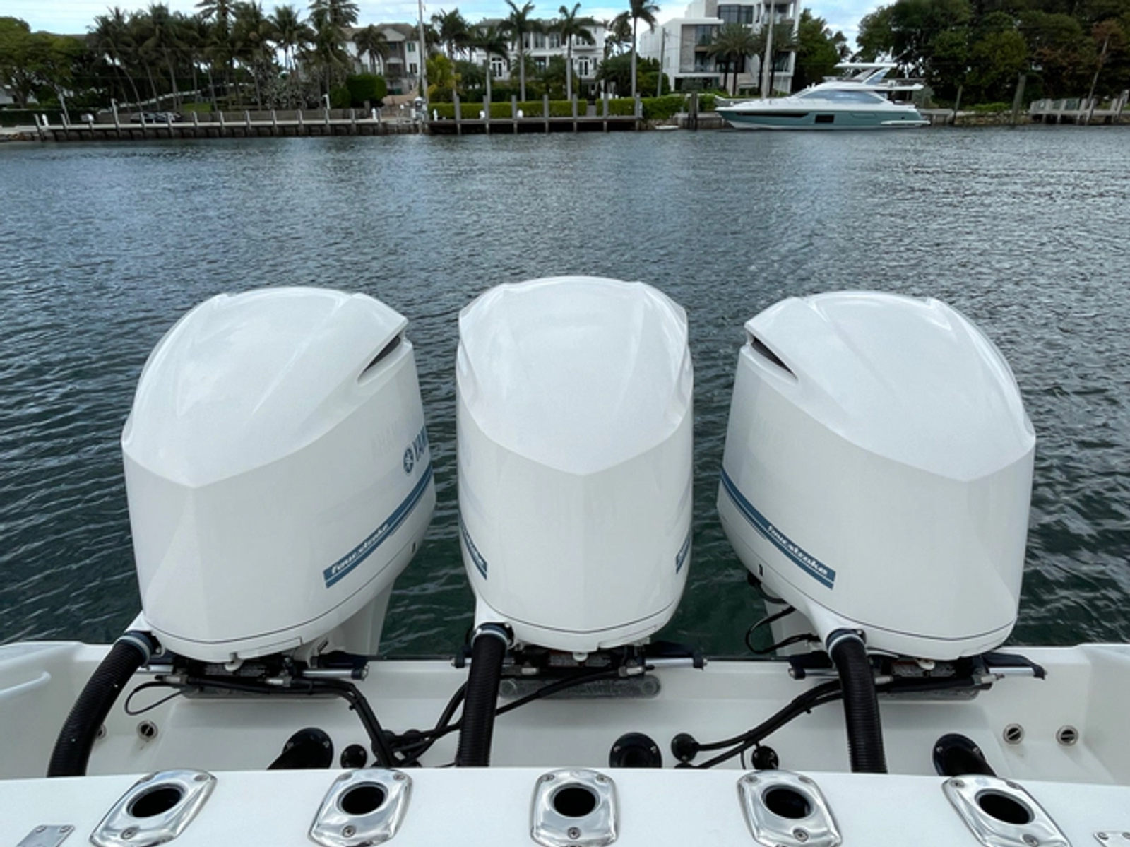 “PERFECTION” is a one-owner, lift-kept 2020 EdgeWater 370CC that shows exactly as her name suggests, finished in Bentley Metallic Blue with no bottom paint. Built on the proven 368 platform and evolved into the highly sought-after 370CC, she features EdgeWater’s unsinkable single-piece infusion hull paired with a double-step design for a smooth, stable ride in any conditions. Powered by triple Yamaha 300s with Helm Master joystick control and a Side-Power bow thruster, she delivers exceptional performance with effortless handling. She’s loaded to the gills with factory options, including SeaKeeper 3, TracVision KVH, FLIR night vision, and a full Garmin electronics suite. Her layout balances serious fishability with comfort, highlighted by folding mezzanine seating, dive door, and a well-thought-out bow entertaining space with forward seating and a powered drop-down table. Below deck, her air-conditioned cabin with over 6’3” of headroom makes overnighting both practical and comfortable.