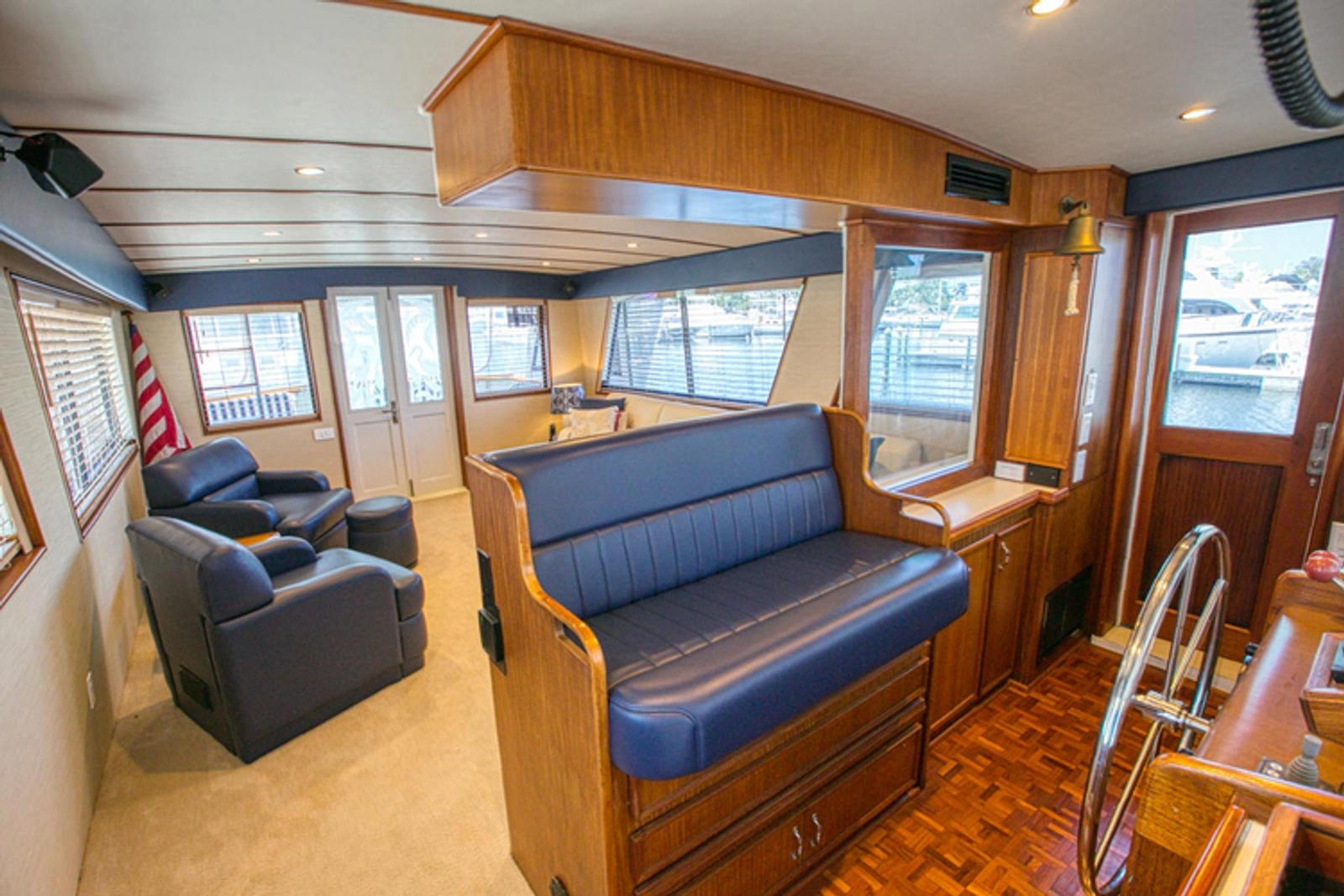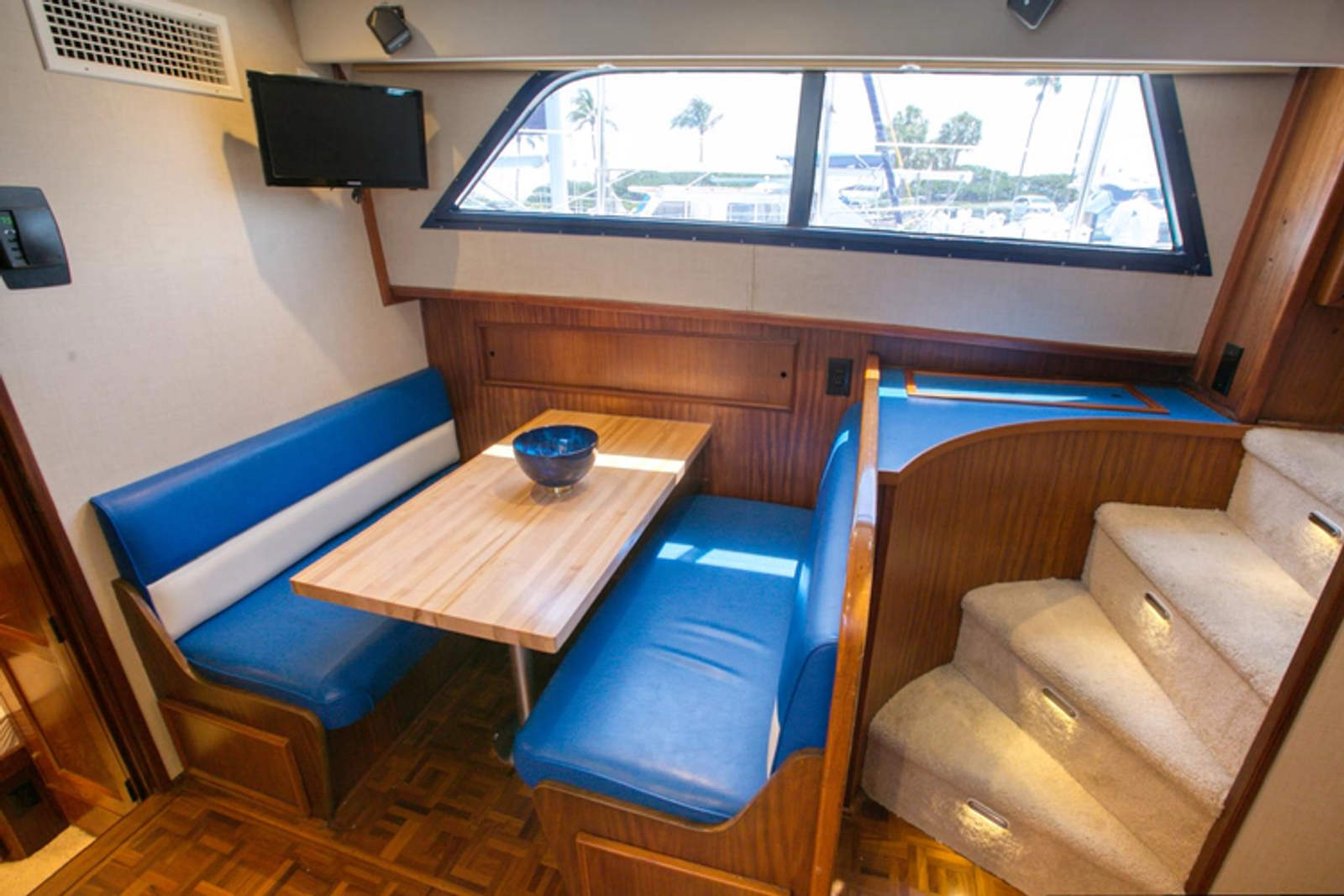 The galley on this beautiful yacht has been completely updated with wood floors, new appliances, new countertops, and