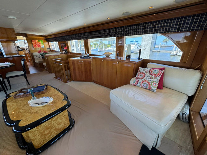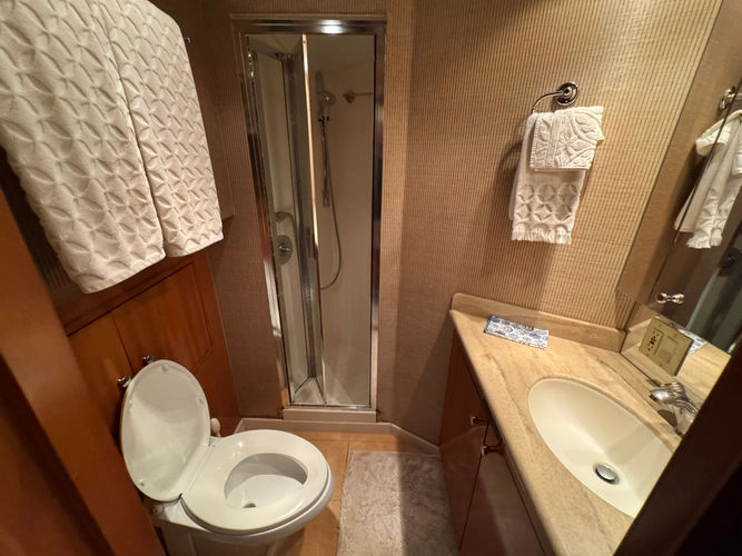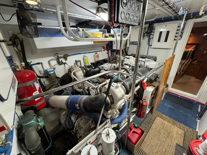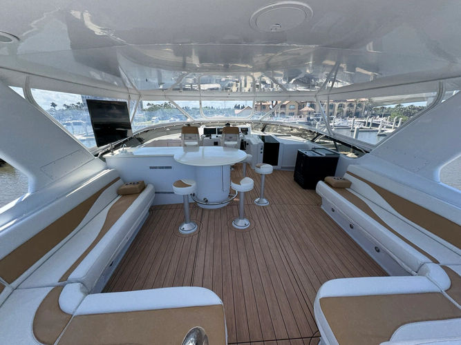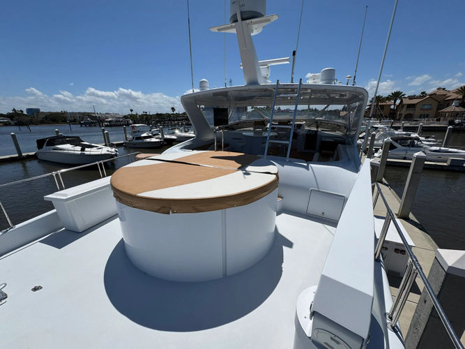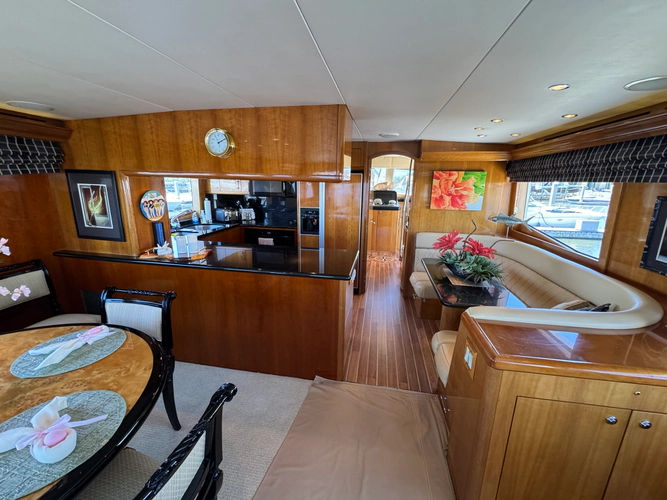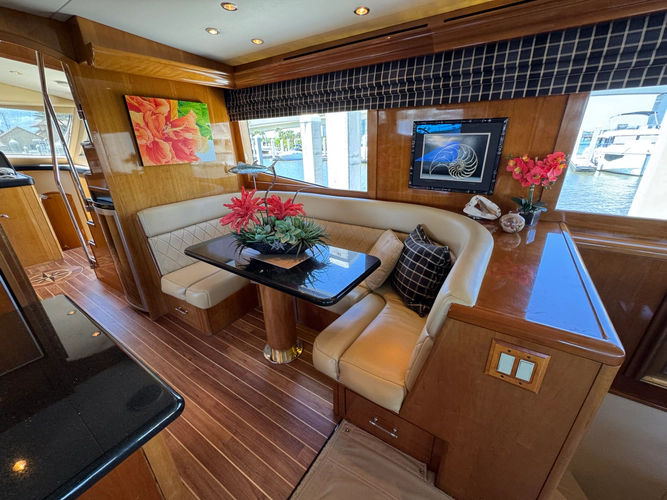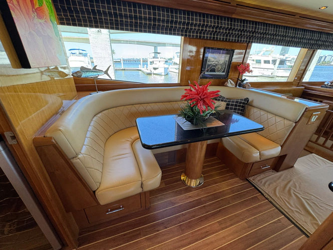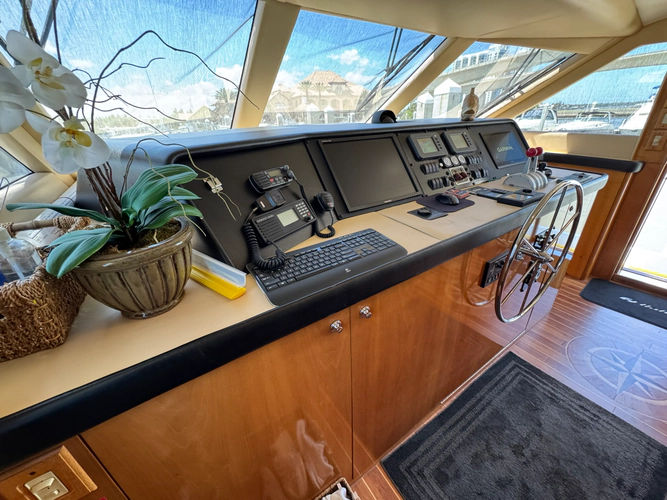 Excellent Condition Throughout with MANY updates cosmetically and mechanically - VERY LITTLE wear, shows consistent care and maintenance inside and out. Paint is glossy on exterior, exterior soft goods recently re-done, navigation electronics updated, interior wood/soft goods/walls/flooring/ceilings in EXCELLENT shape, no odors, HOT TUB from factory on aft deck, hardtop, venturi shield is fresh, new washer and dryer, newer TV’s…etc. Inquire for more details.