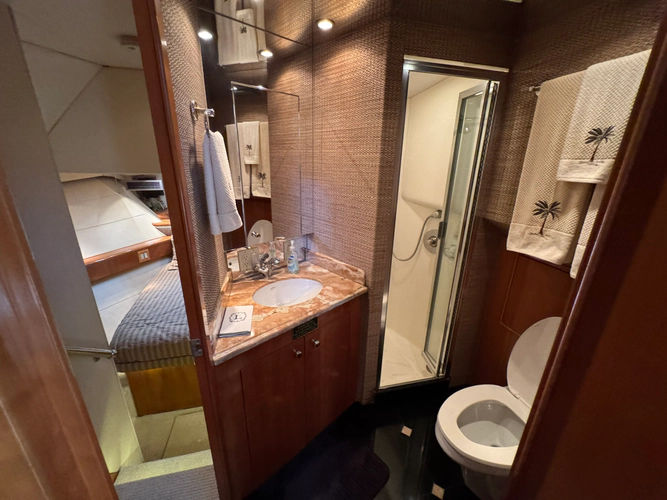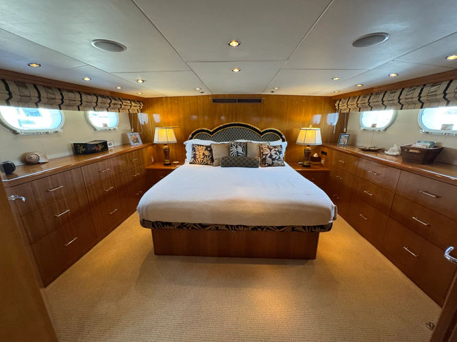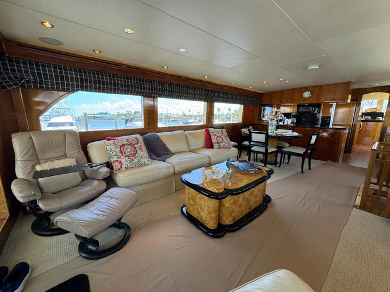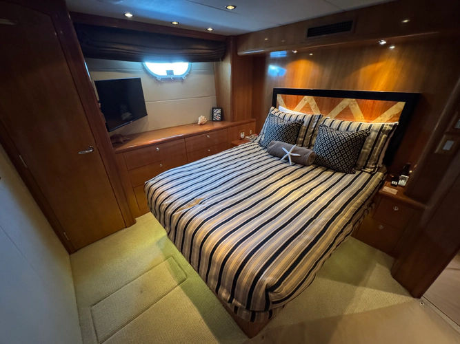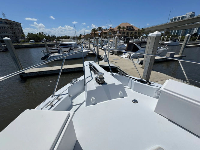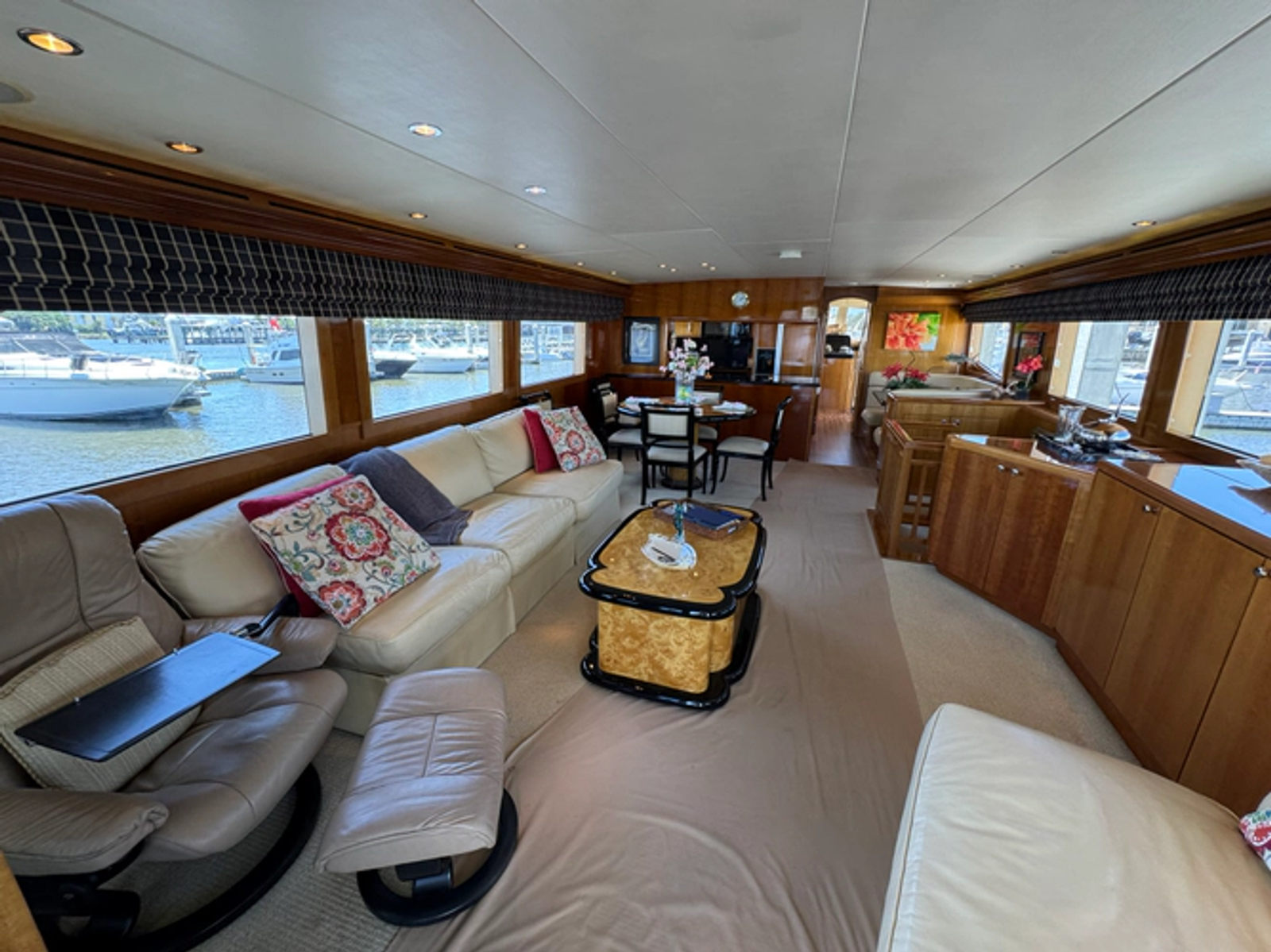 Excellent Condition Throughout with MANY updates cosmetically and mechanically - VERY LITTLE wear, shows consistent care and maintenance inside and out. Paint is glossy on exterior, exterior soft goods recently re-done, navigation electronics updated, interior wood/soft goods/walls/flooring/ceilings in EXCELLENT shape, no odors, HOT TUB from factory on aft deck, hardtop, venturi shield is fresh, new washer and dryer, newer TV’s…etc. Inquire for more details.