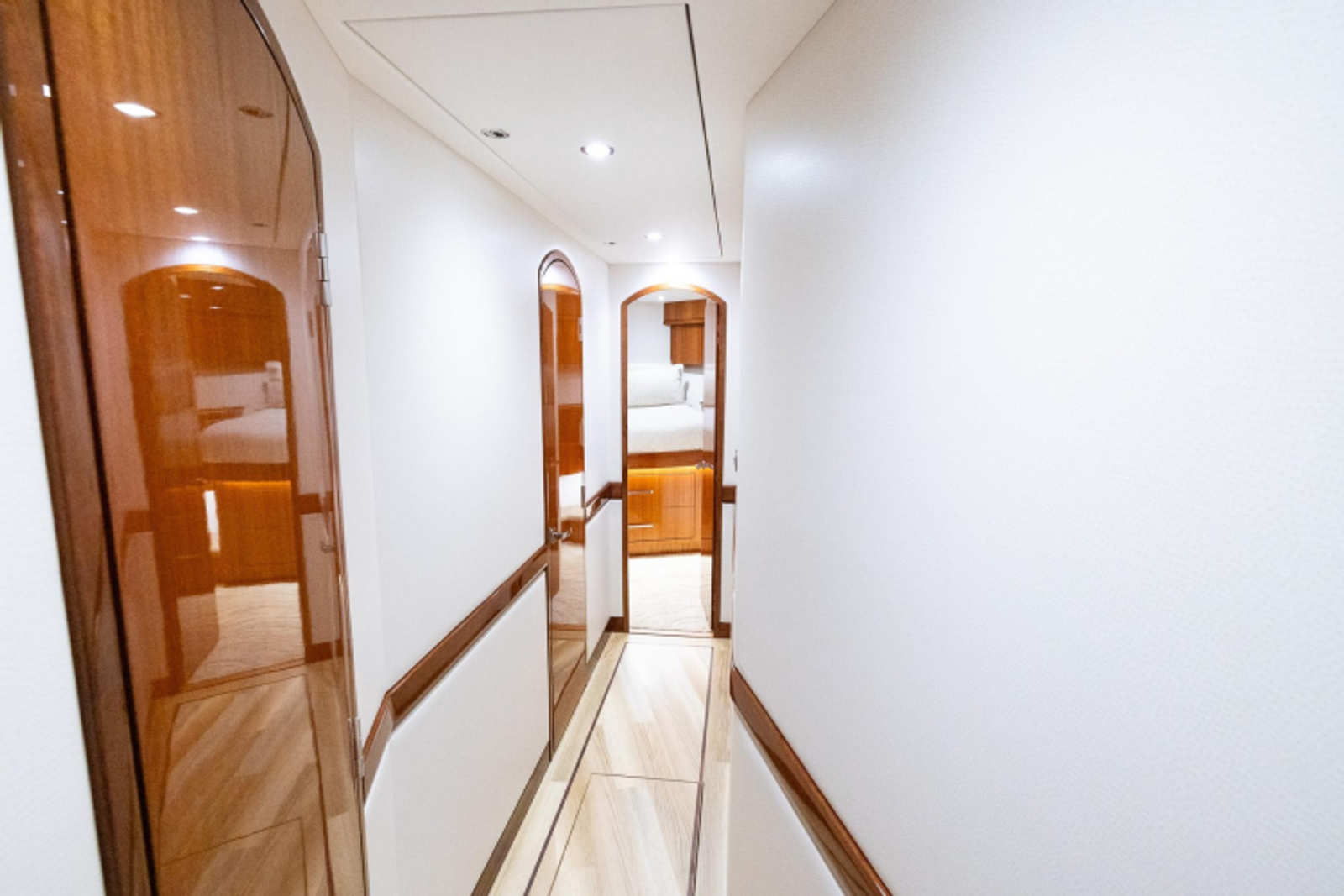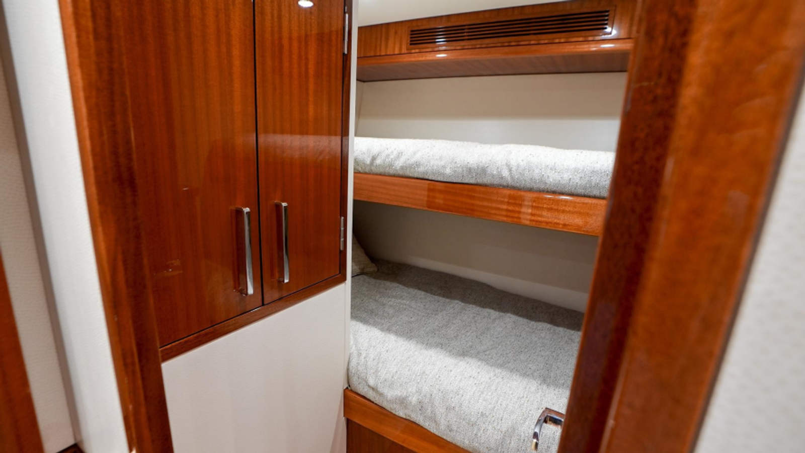 - Upgraded overhead mahogany cabinets port and starboard