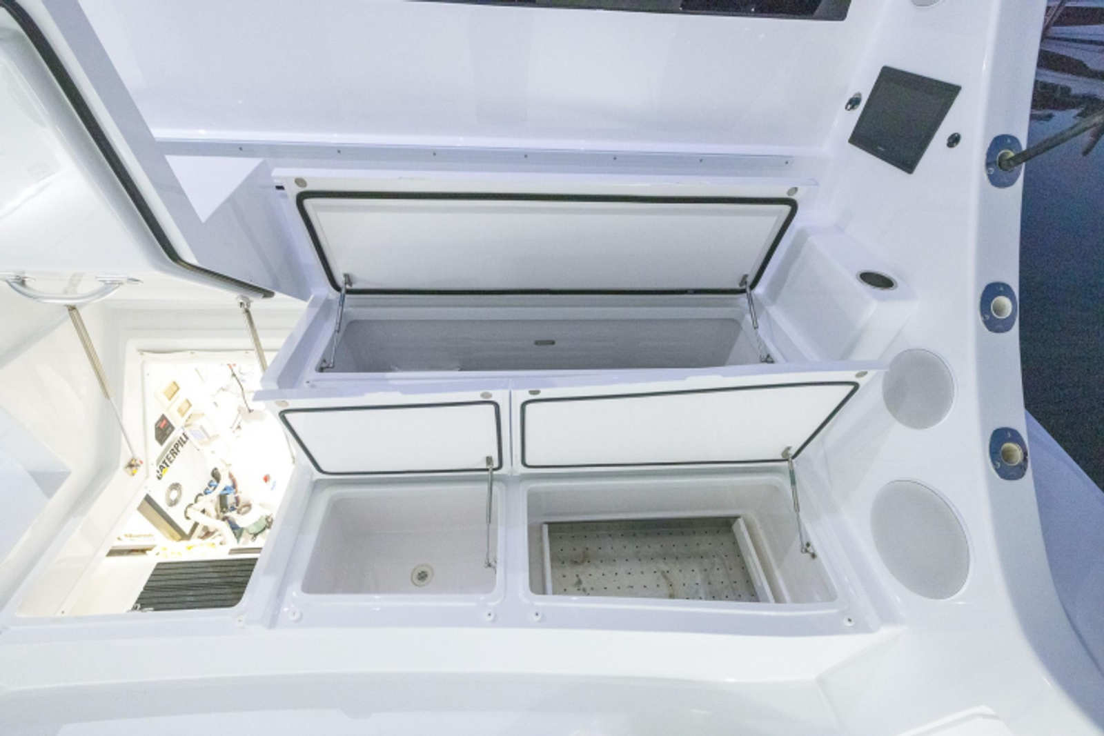 - Two large in-deck fishboxes with macerator pumps