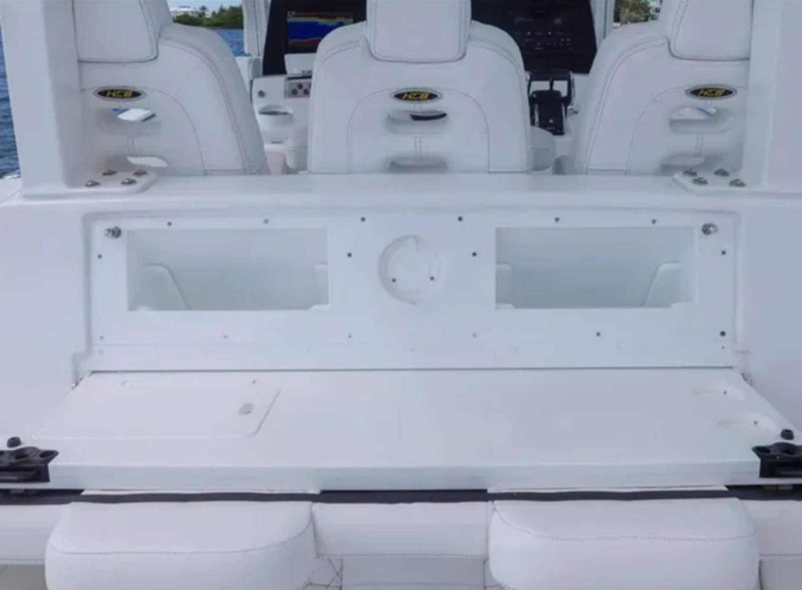 - Rear-facing cockpit seating w/ fold-down bait prep station