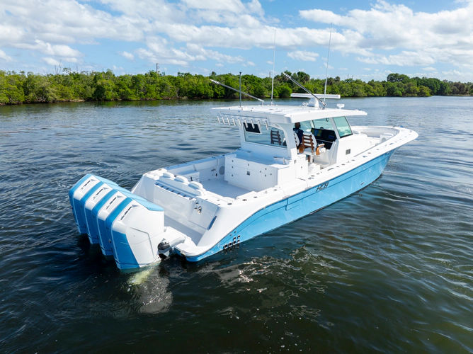 Equipped with the latest technological advancements, it offers you a seamless and unparalleled boating experience. The state-of-the-art Bolt Control System and the first walk in machine room on a 40-foot center console proves our relentless pursuit to push the limits.