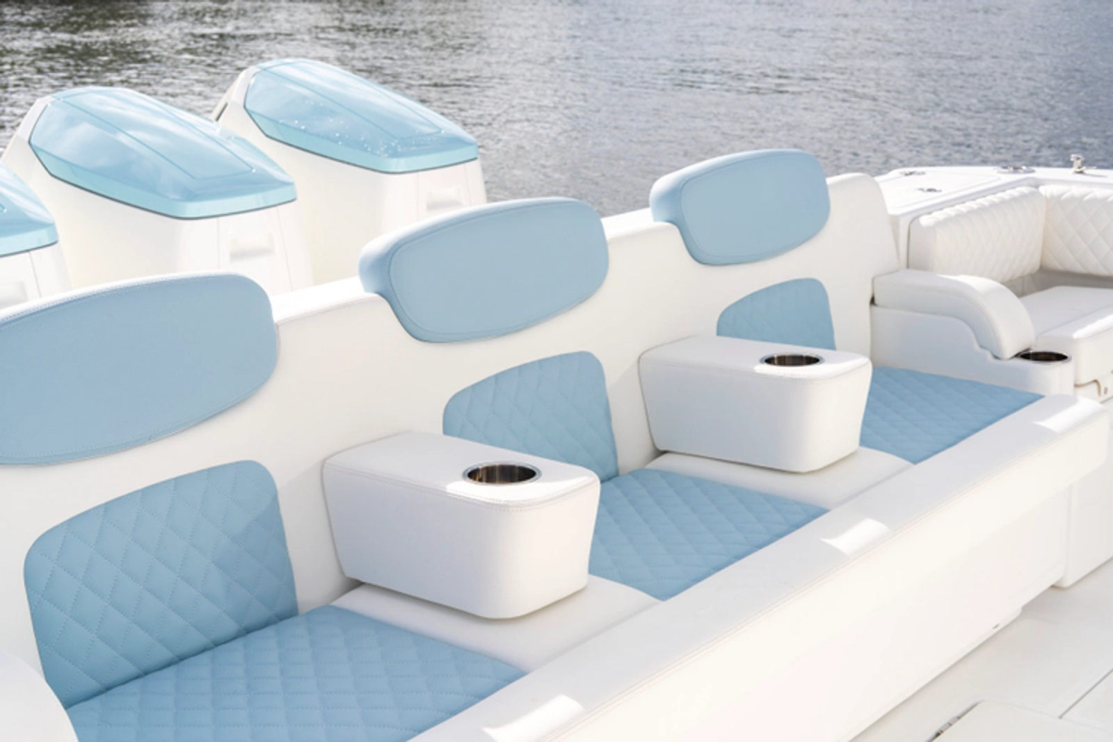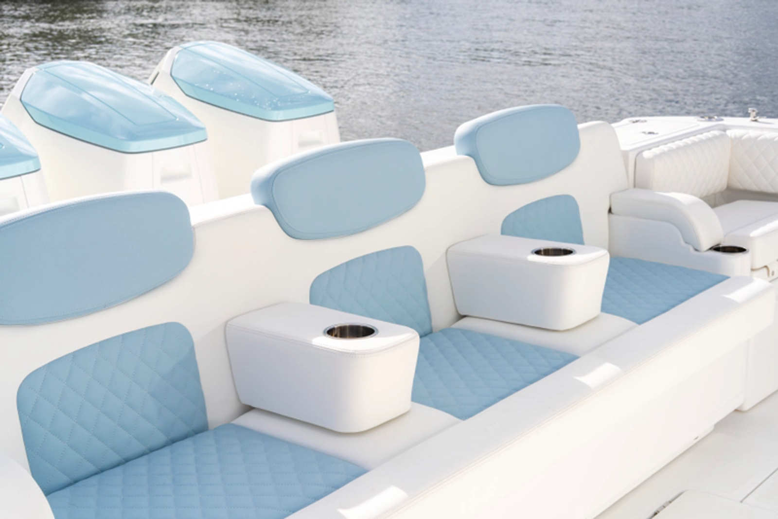 - Transom Cooler Seats, 38QT, Port and Starboard w/ Cushions