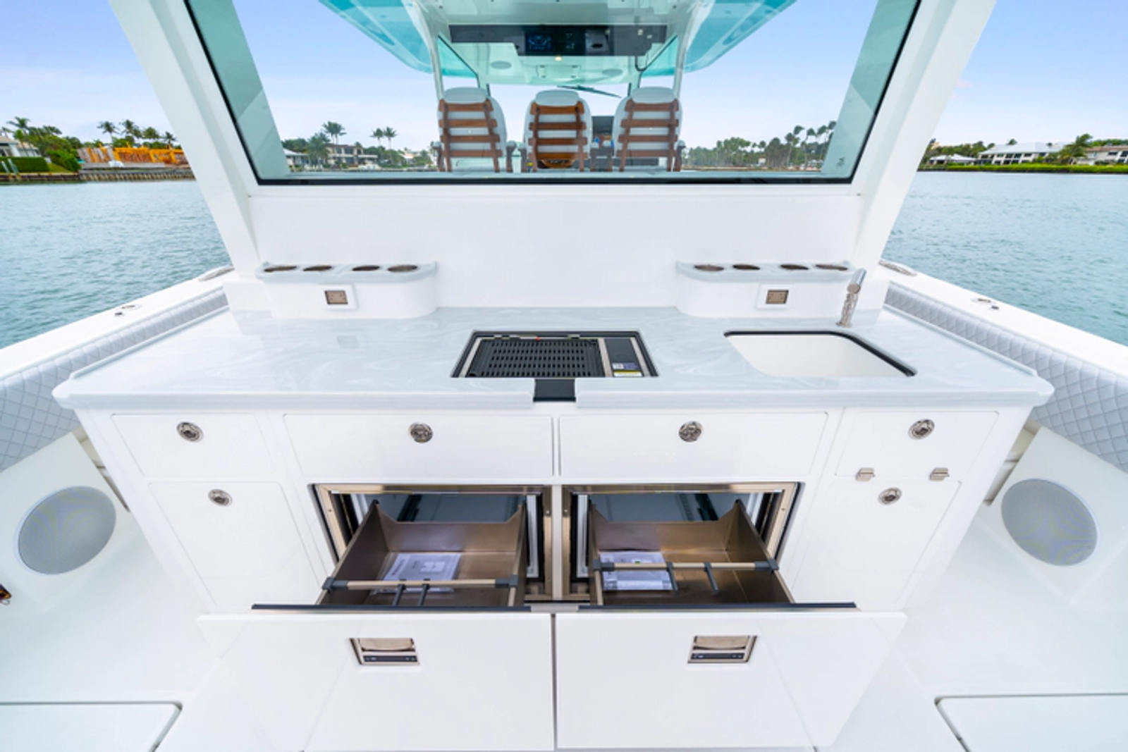 • Port & starboard 38qt transom cooler seats