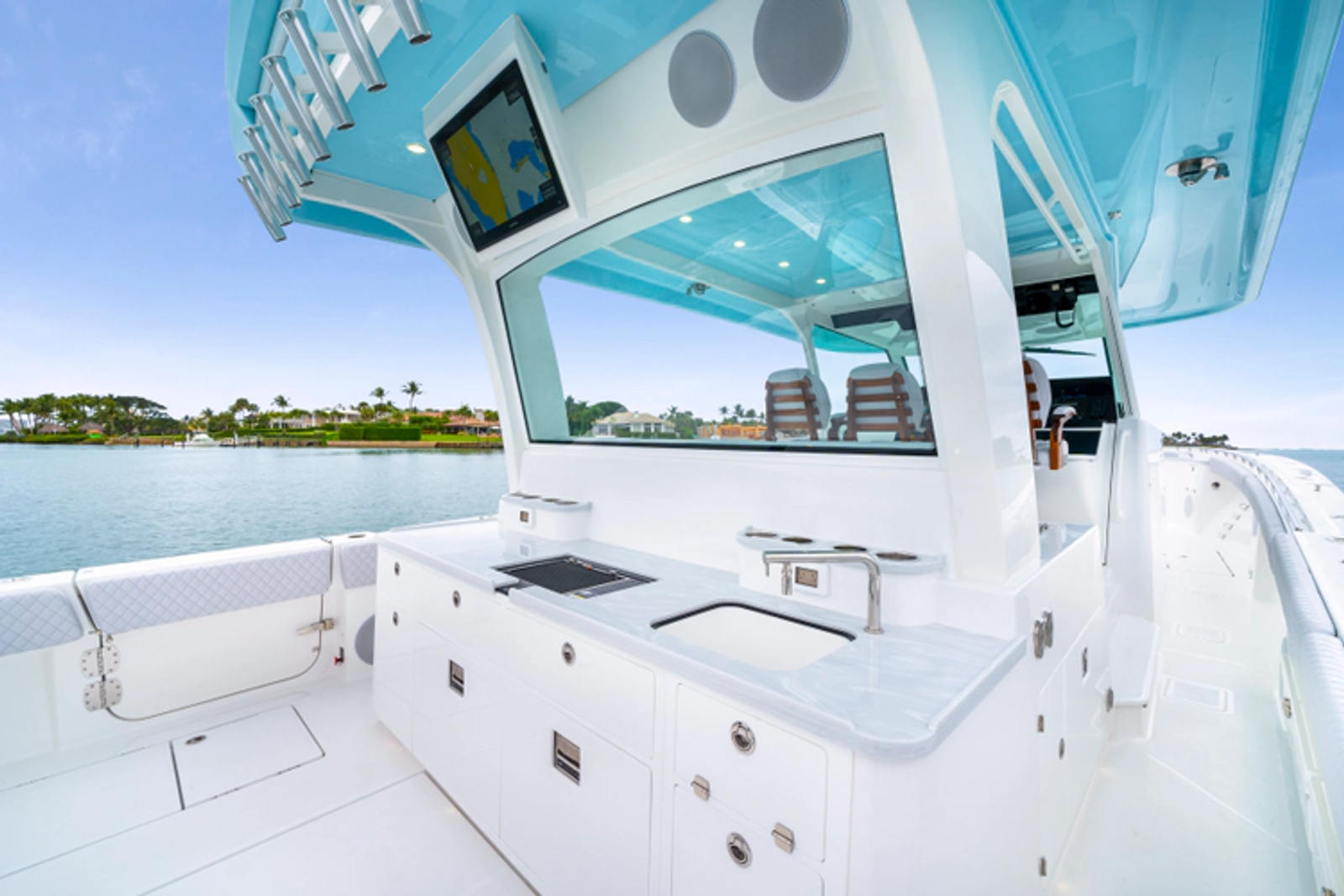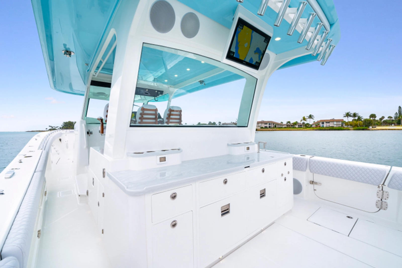 • Garmin aft-facing screen, AIS system, 6' radar, XM Weather