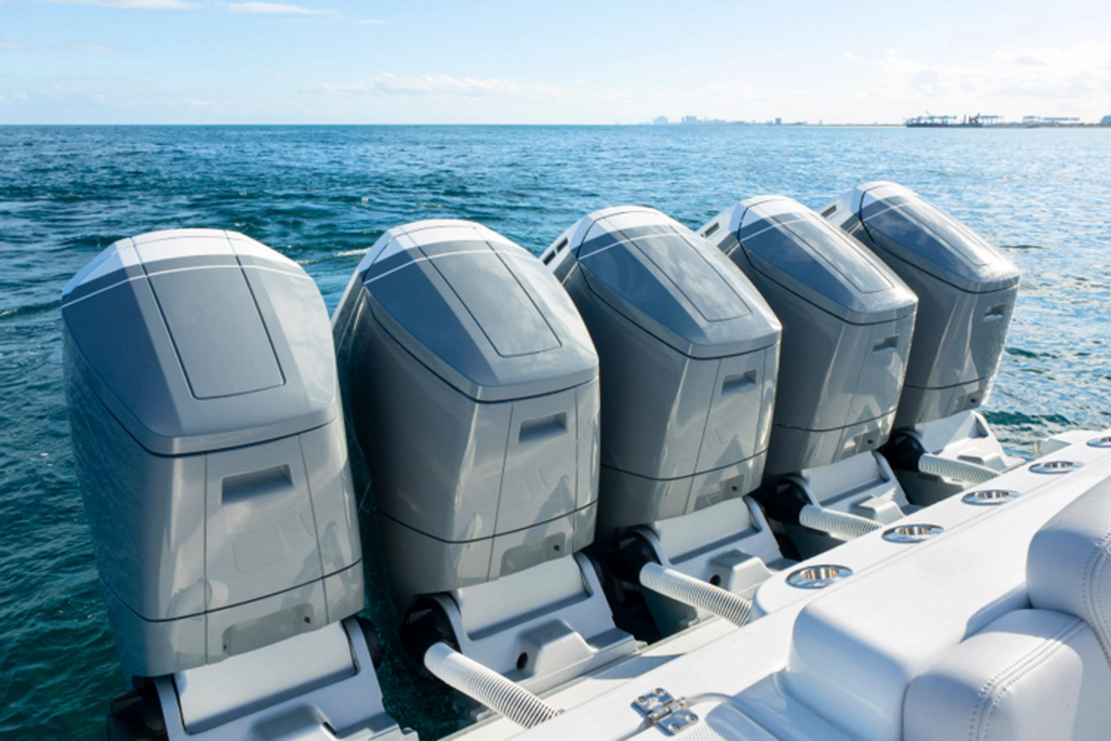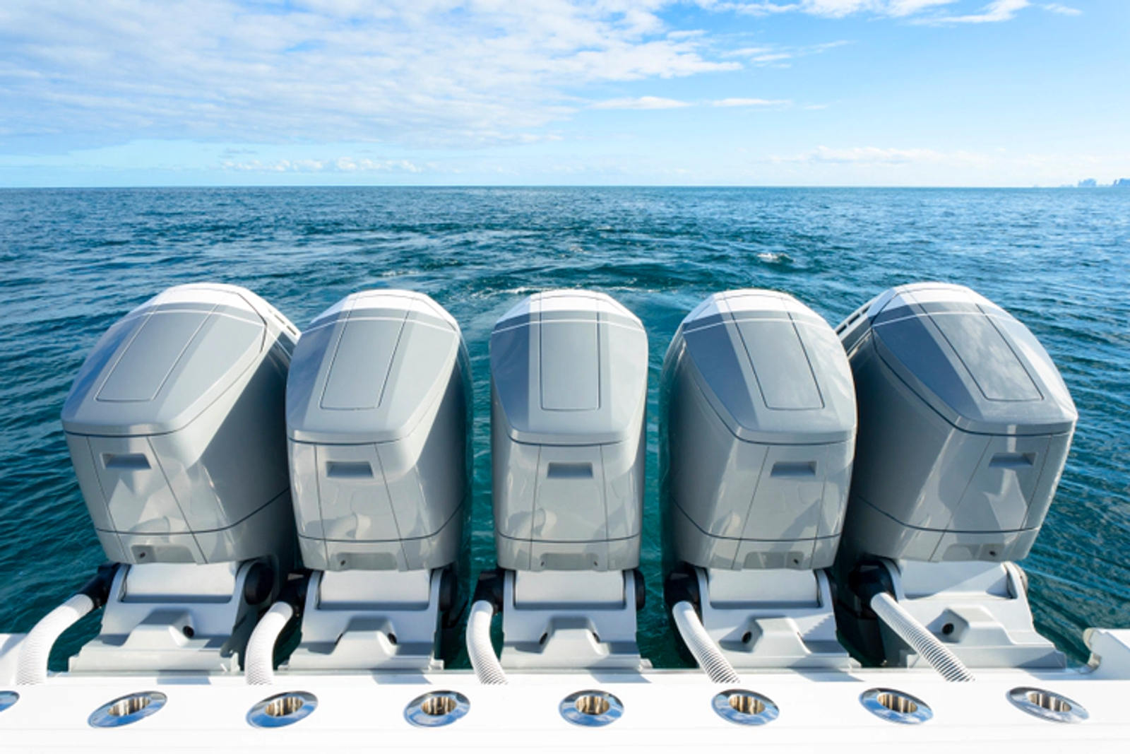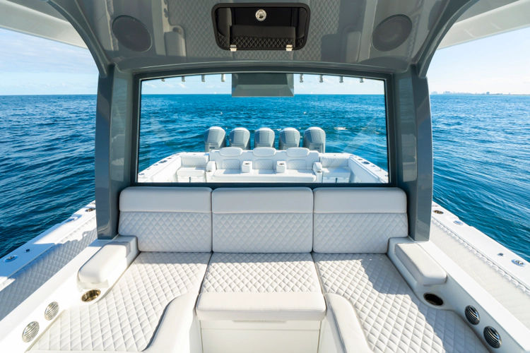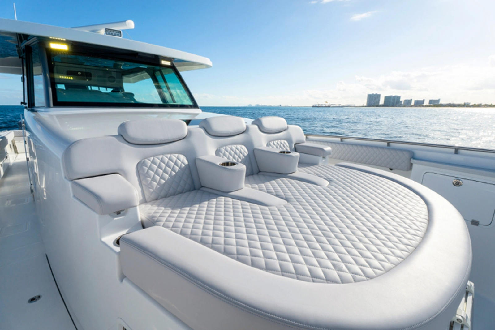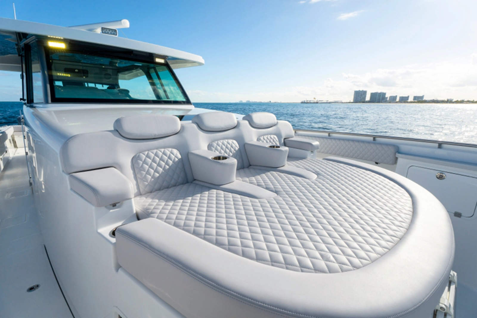 Powered by quint (5) Mercury V12 600 hp outboards and stabilized by a Seakeeper 10, this flagship delivers blistering speed, remarkable efficiency, and a ride so refined it redefines the category it created.