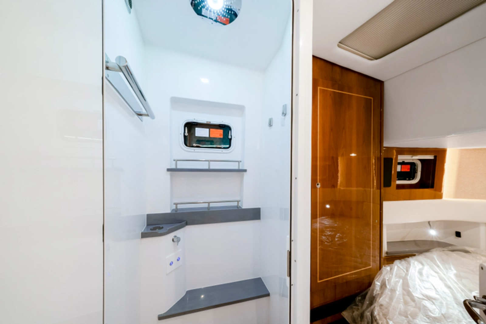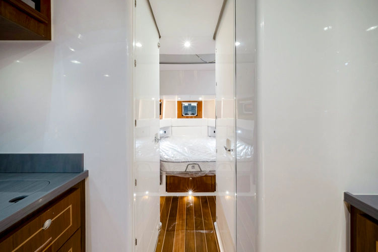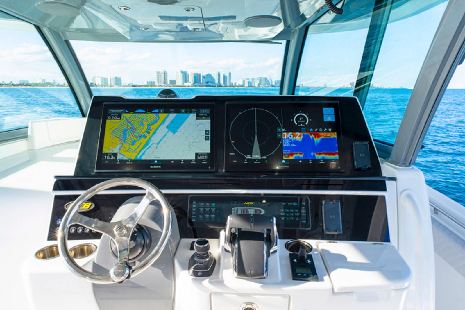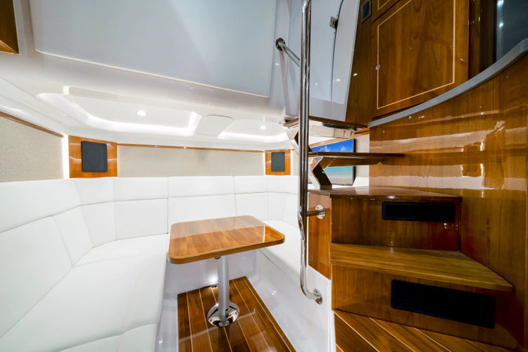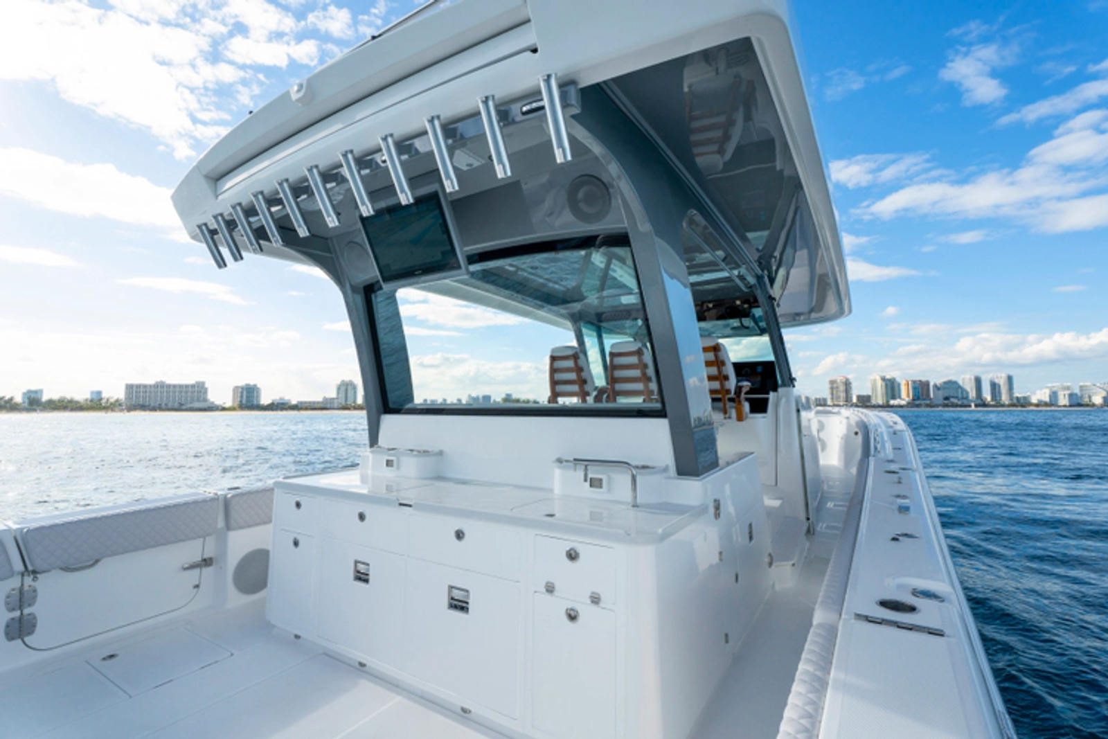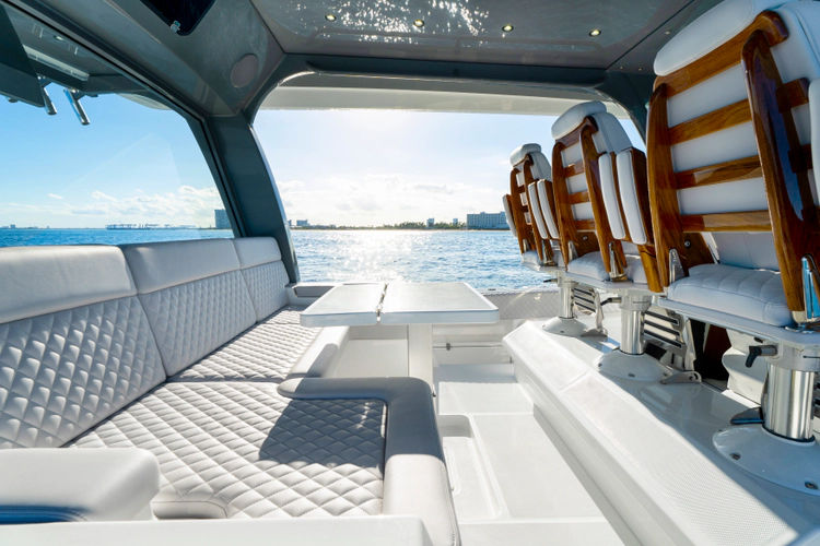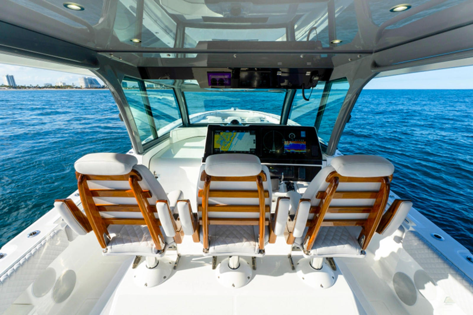 Powered by quint (5) Mercury V12 600 hp outboards and stabilized by a Seakeeper 10, this flagship delivers blistering speed, remarkable efficiency, and a ride so refined it redefines the category it created.
