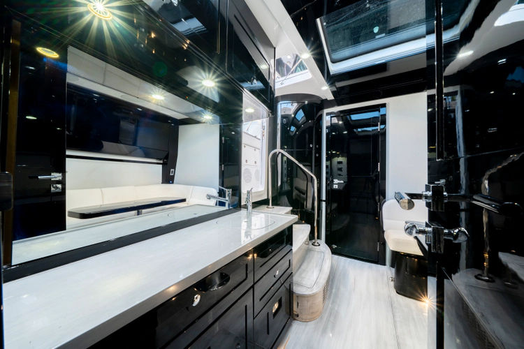 - Custom Piano Black Cabinetry to Match Hull Finish