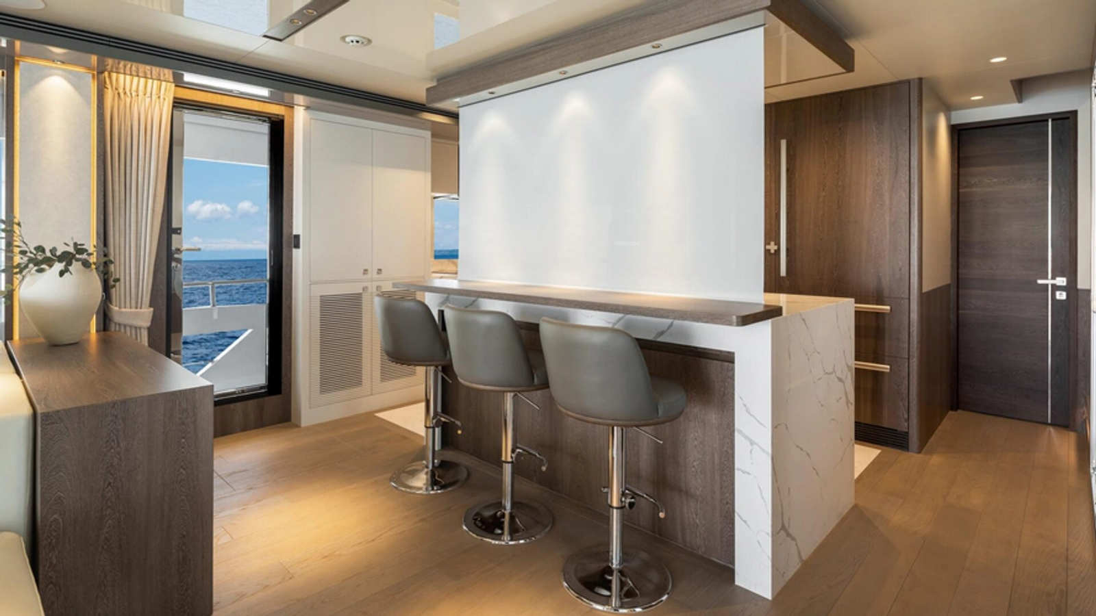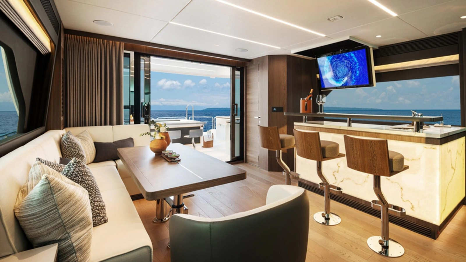 - Add two glass windows on the aft deck stern bar top for bringing natual light to beach club