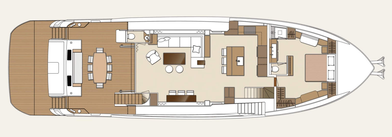 - One integrated stair from aft deck to upper deck.