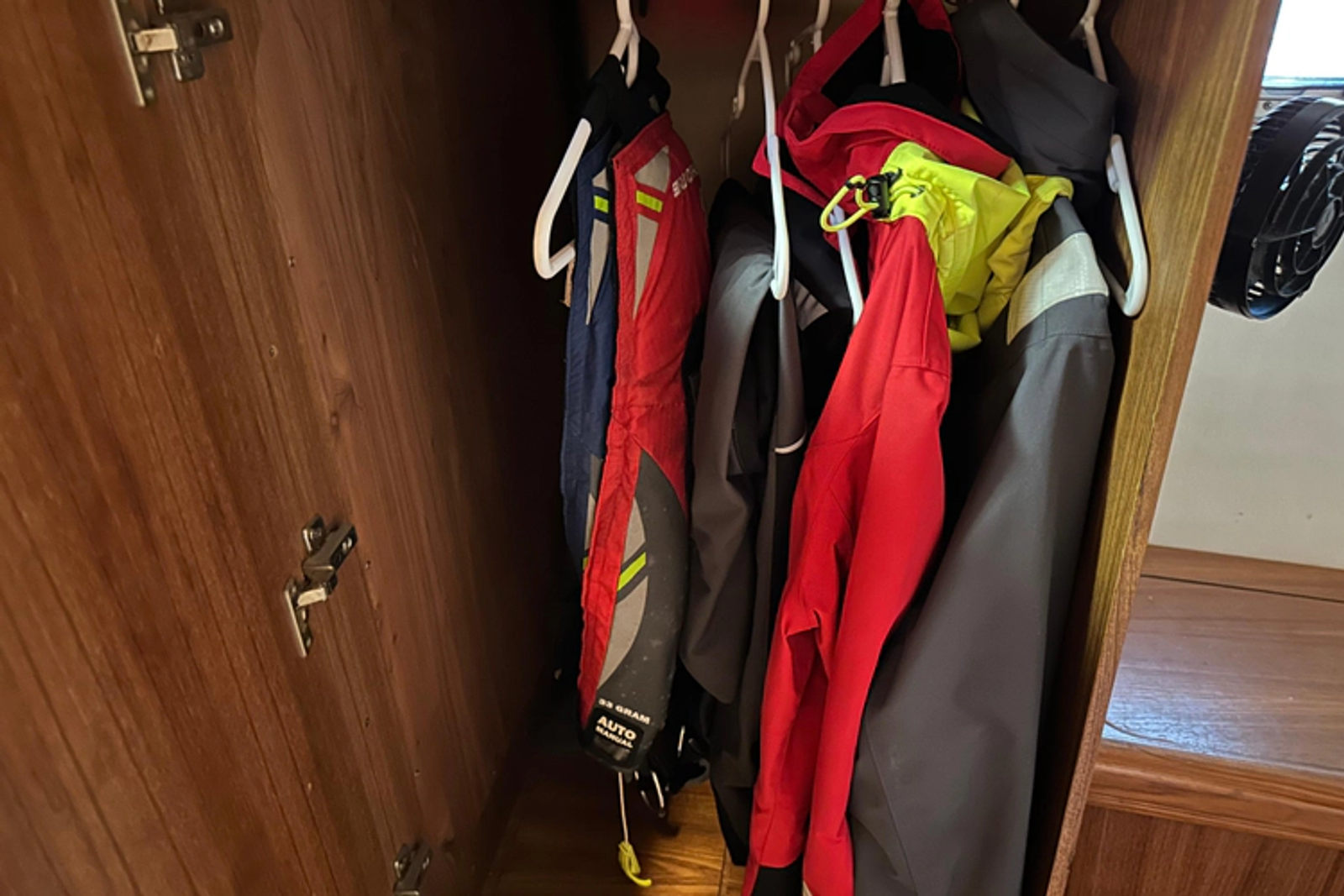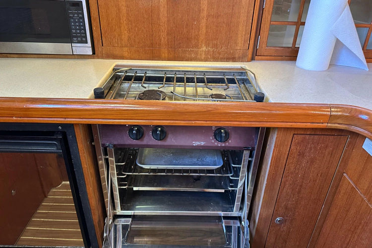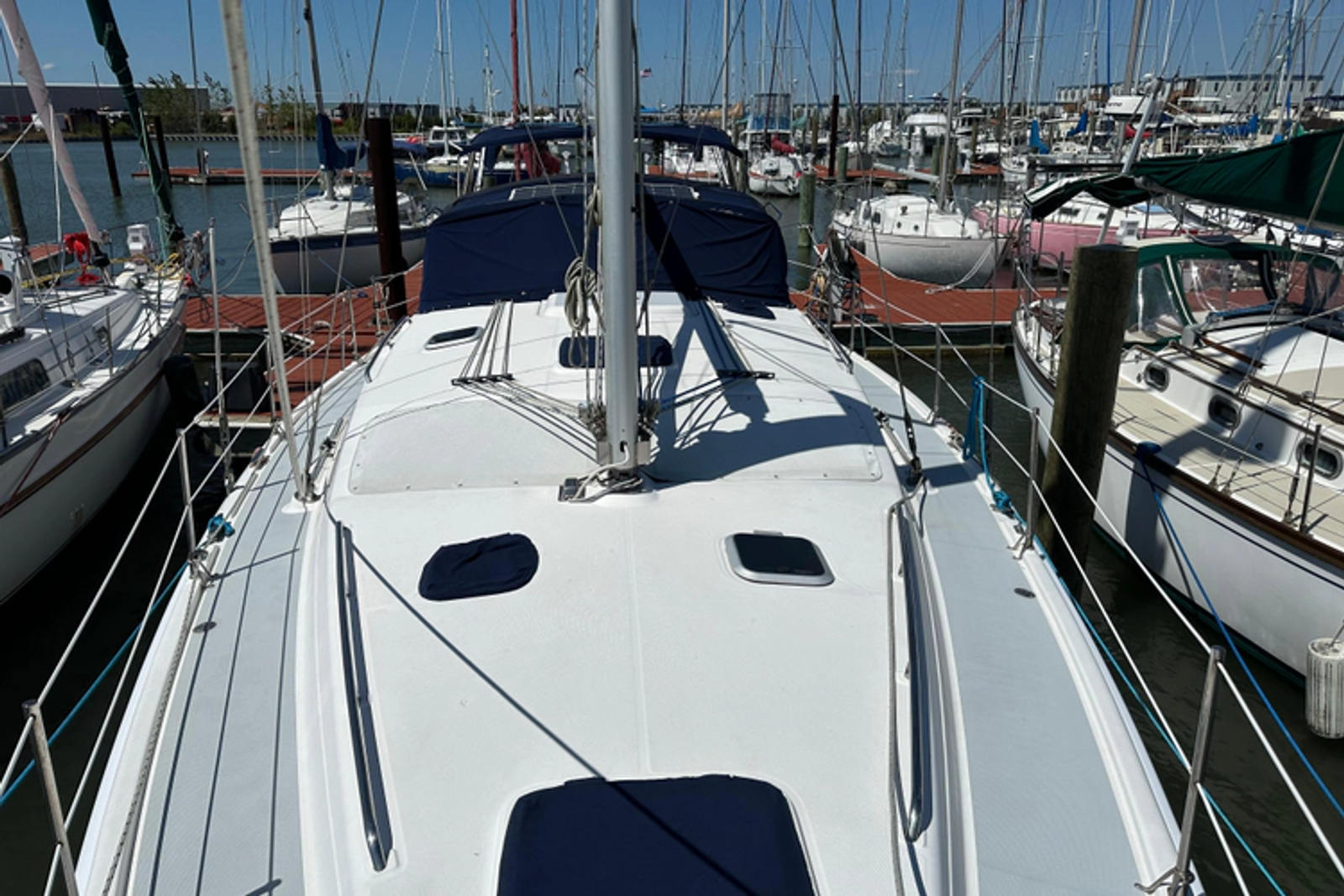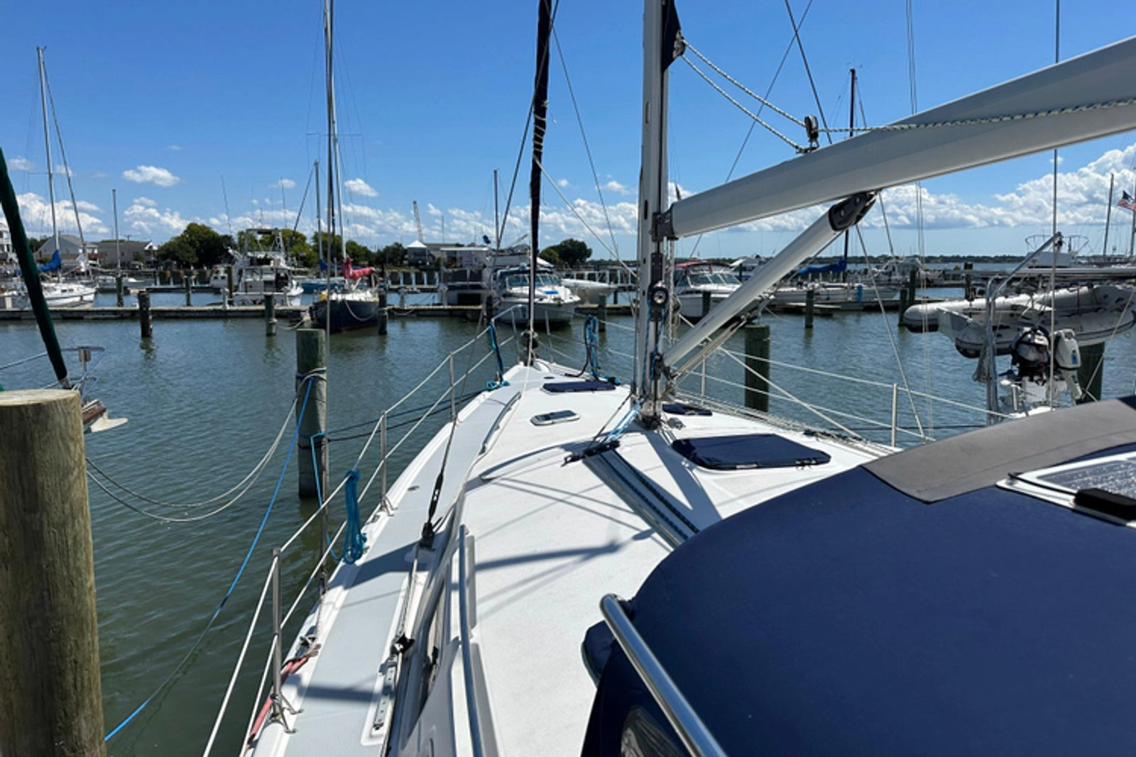 Powered by a reliable Yanmar 4JH3E 56 HP diesel engine, this boat cruises efficiently at 6.5-7 knots under power, with a maximum of around 8 knots. Fuel capacity is 51 gallons, water holds 125 gallons (in two tanks), and thereand#39;s a 45-gallon holding tank with an 11-gallon water heater. A bow thruster aids in tight maneuvers, and the electrical system includes shore power, inverter/charger, solar panels, and house/start batteries for off-grid capability. Safety features abound: electric windlass with chain/rode, life raft mount, EPIRB-ready, and multiple bilge pumps.