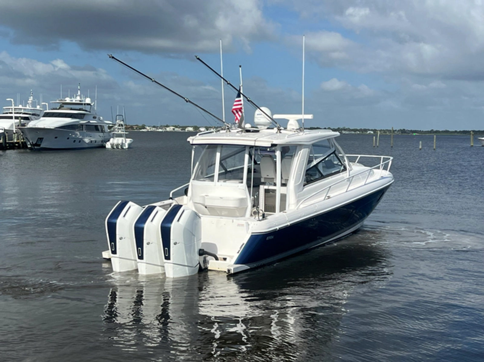 Images displayed may be illustrative or representative rather than depictions of the actual vessel. Variations in features, options, color, condition, and engine hours may exist between images and the actual vessel. For accurate details — including whether images depict the specific vessel listed - please refer to the accompanying description or contact us directly. We encourage prospective buyers to request additional photographs of the actual vessel prior to purchase.- Triple Mercury 600 V12s (Installed November 2024)