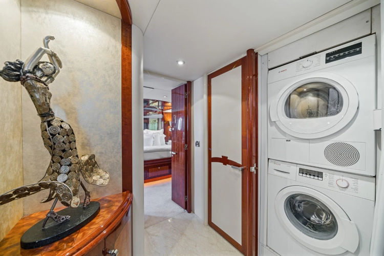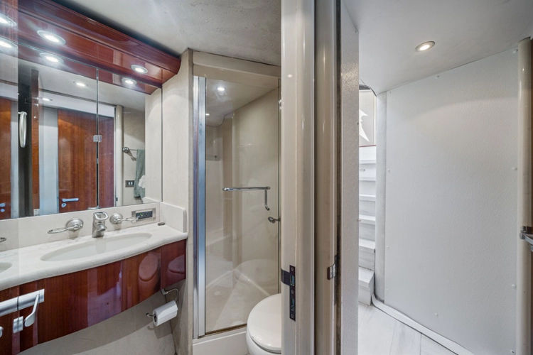 - Five cabins and six heads, including three queen-plus-sized berths, an additional bunk -room, and crew quarters.
