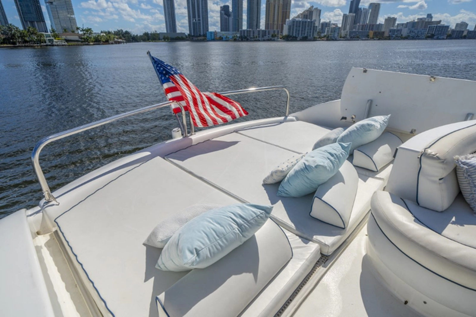 - (2) Pods: one for personal watercraft storage, one for dive compressor andamp; equipment Fiberglass bulwark on aft end of sport deck with stainless steel bulwark rails