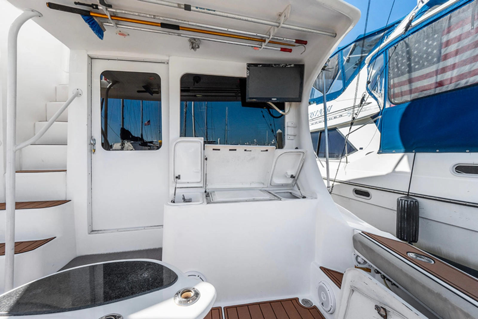 This 2006 Luhrs 42 Flybridge offers the ideal balance between offshore capability and comfortable cruising. Built on Luhrs’ proven deep-V hull, she delivers a smooth, confident ride while maintaining the stability and handling serious anglers appreciate. Twin Cummins QSM11 engines provide strong, reliable power with efficient performance for both fishing expeditions and extended cruising. The large cockpit is well-equipped for serious sportfishing, featuring a transom door, bait prep station, outriggers, and abundant storage.