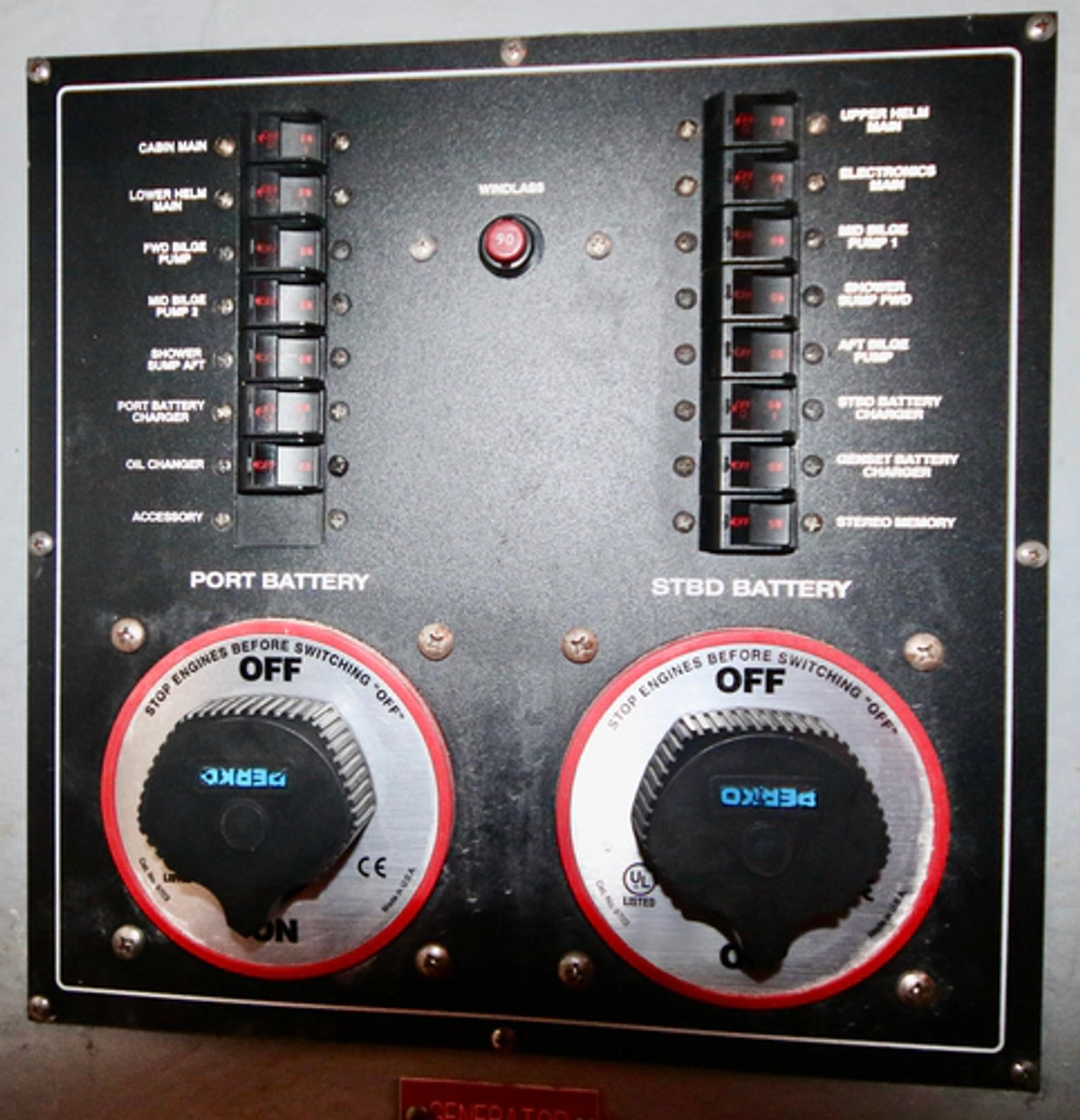 - Windlass foot controls on deck, and at both helms